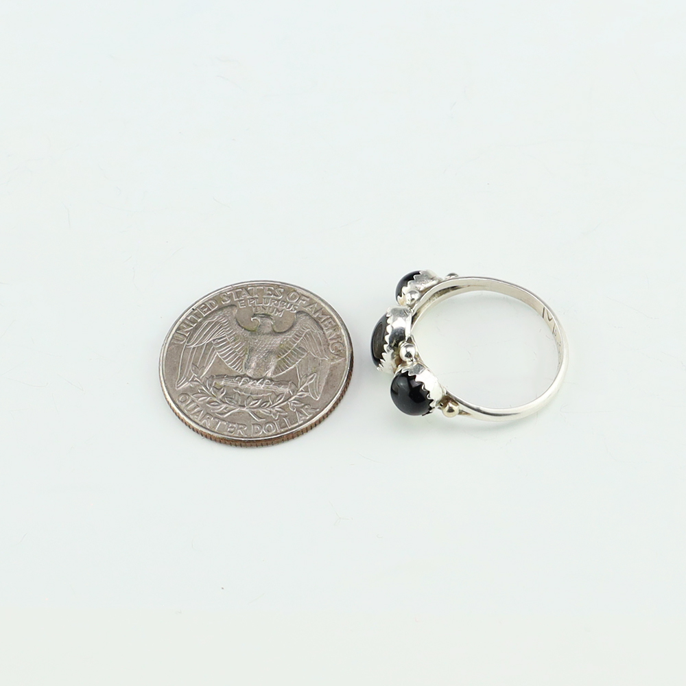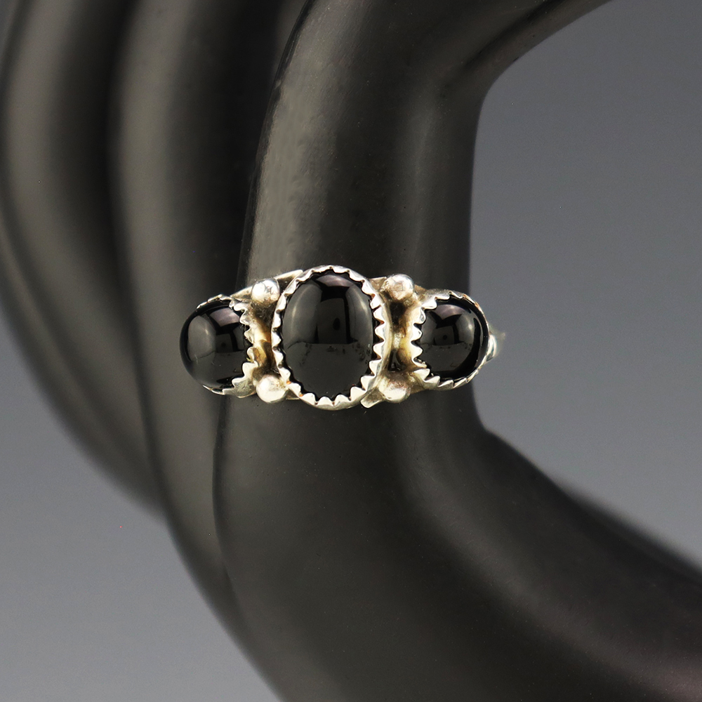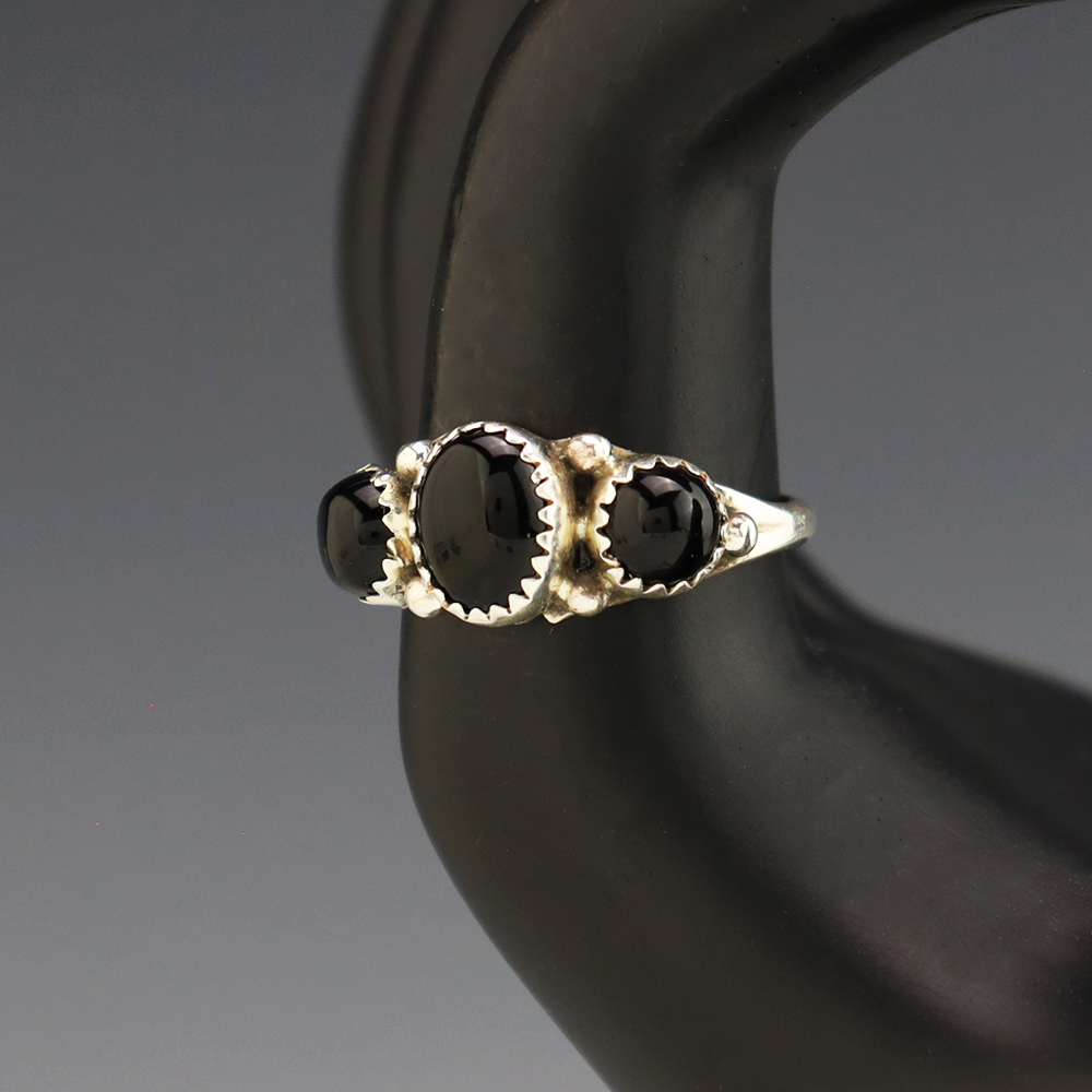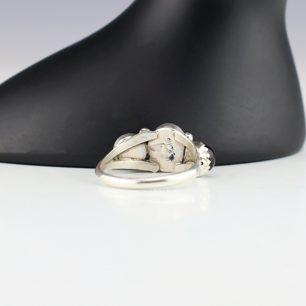 NATIVE AMERICAN TURQUOISE & JET RING BY NANCY & SHELDON WESTIKA 11 1/4