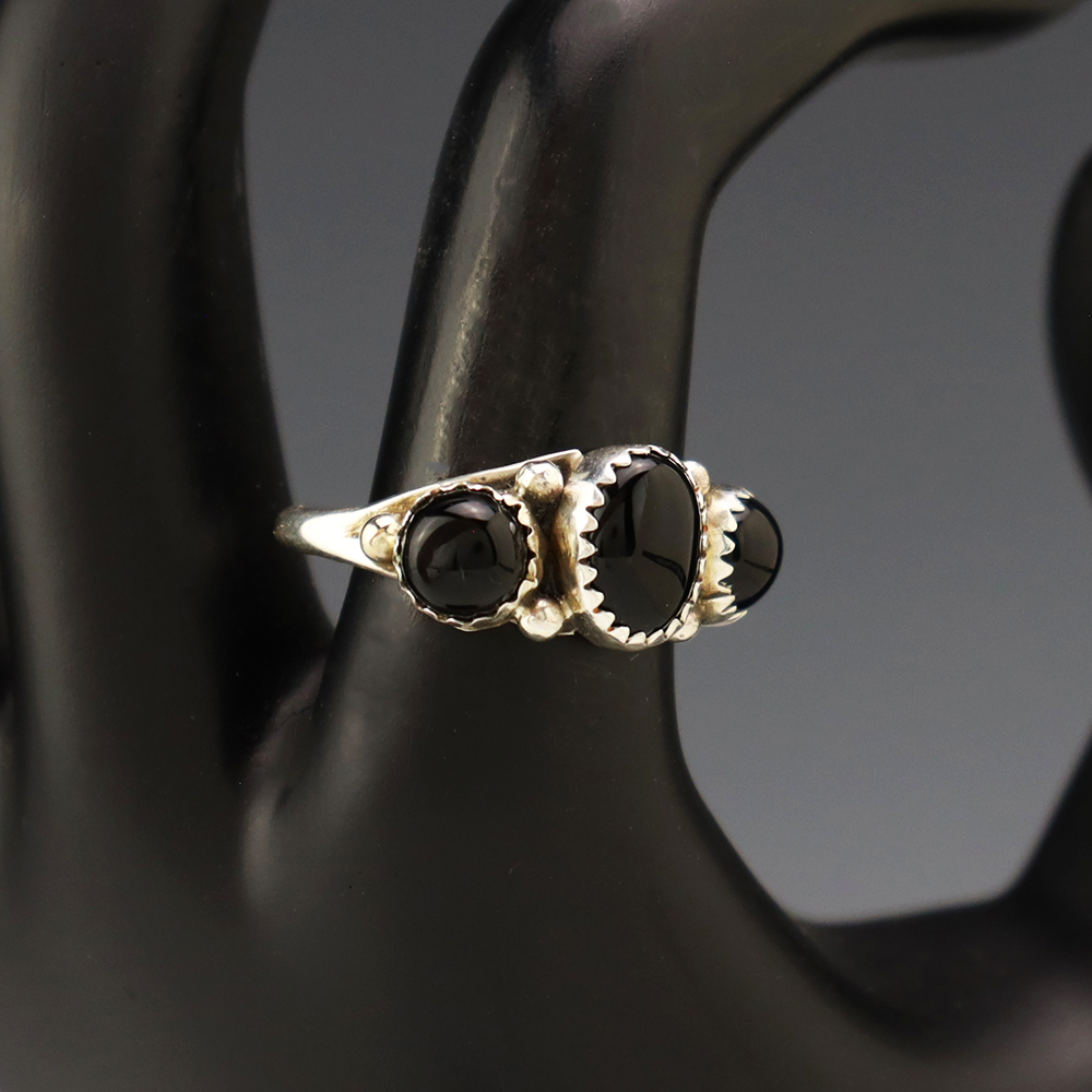 NATIVE AMERICAN ZUNI TURQUOISE & JET RING BY NANCY & SHELDON WESTIKA 10