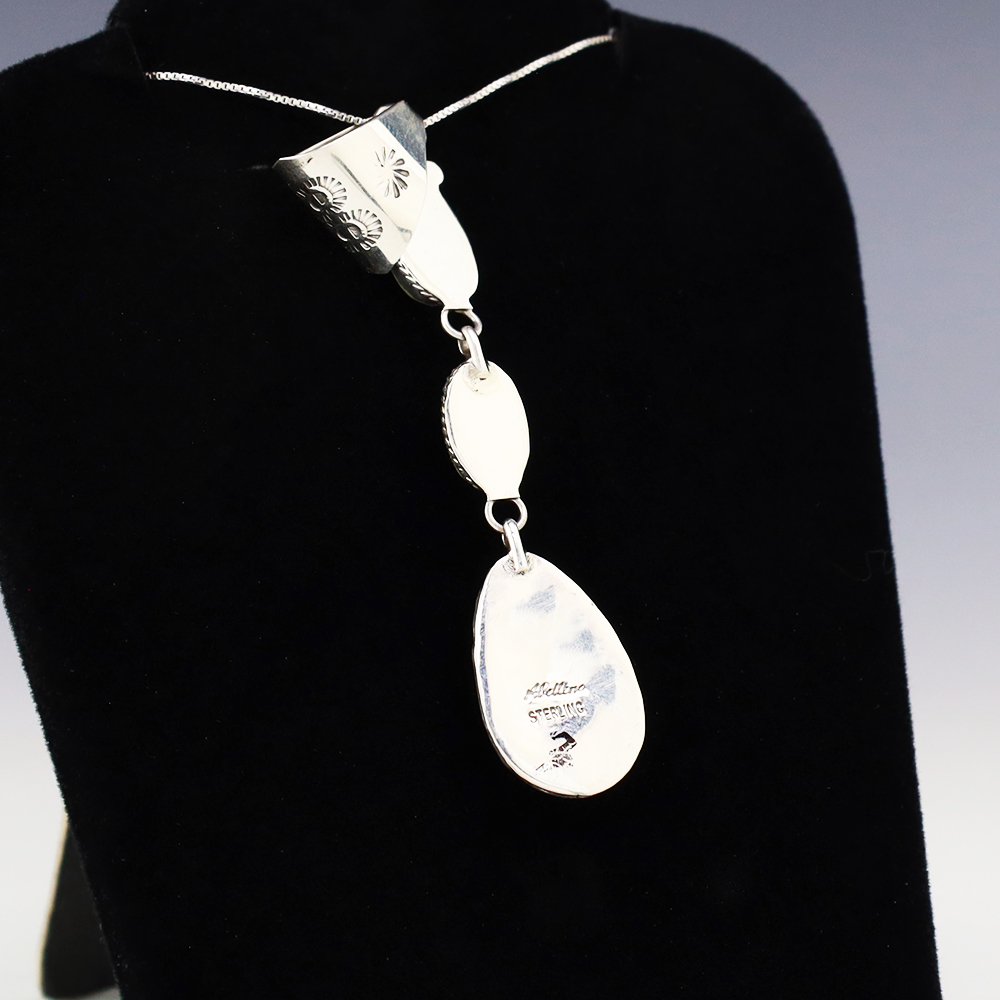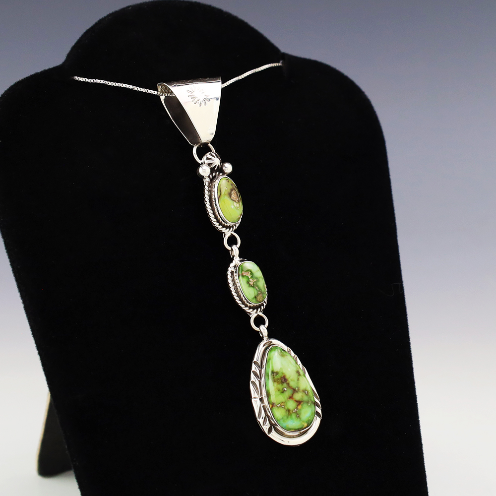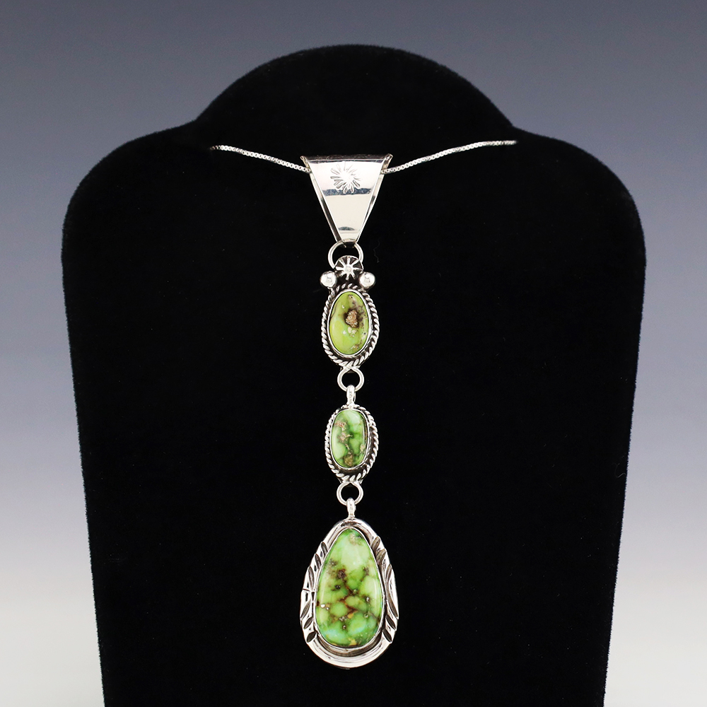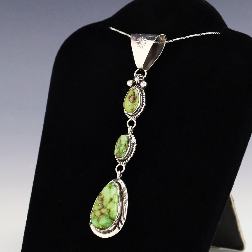 Gorgeous pendant hand made out of sterling silver and Sonoran Gold Turquoise by Navajo artist Abellene Bahe. A timeless beauty that you will enjoy for years to come. Weighs 10 grams. Signed (Chain not included)