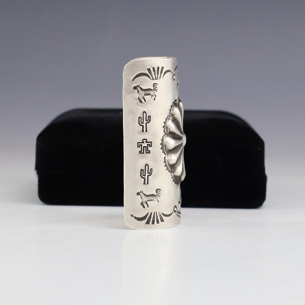 Great design! This sterling silver ponytail holder is sterling silver with a satin finish. The hook clips over an existing elastic band in your hair. Navajo barrettes and ponytail holders look absolutely amazing in your hair. Weighs 12 grams.