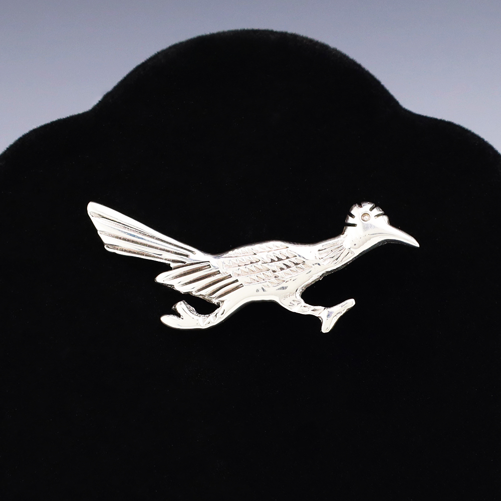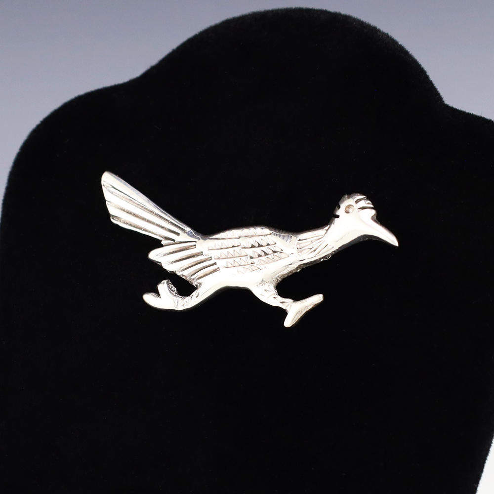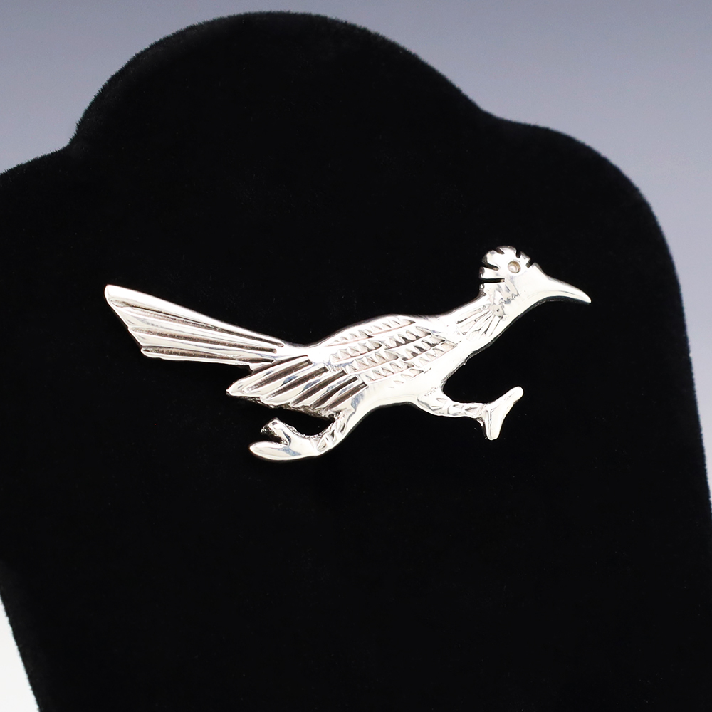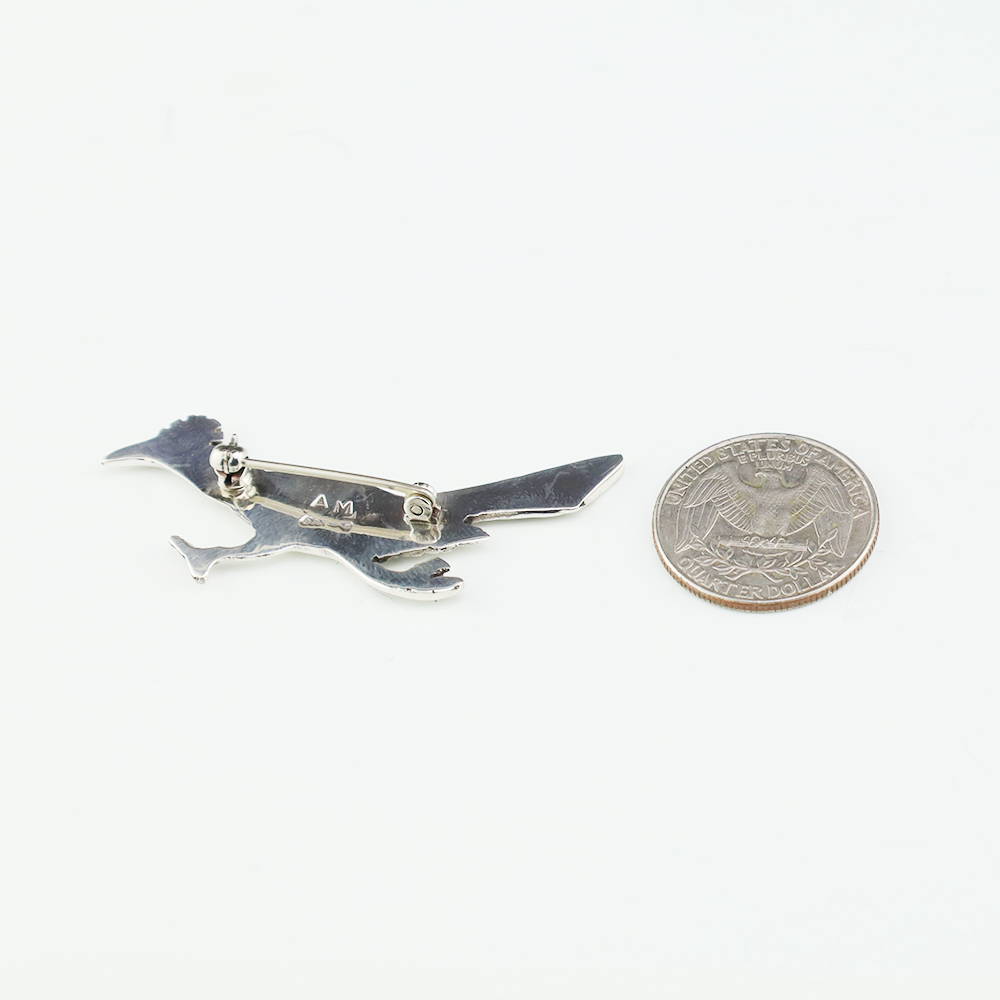 Stellar Roadrunner pin made out of sterling silver by Navajo artist Allison Manuelito. A timeless beauty that you will enjoy for years. Weighs 8 grams. Signed