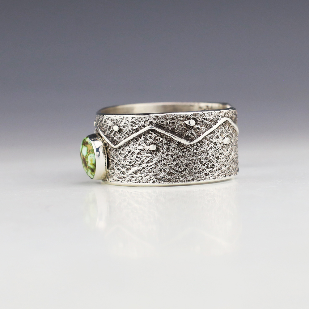 In the mid 1800s, Navajo silversmiths started to use sand casting as one of their silversmithing techniques. Today, silversmiths still use this technique by carving a design in tufa stone (a porous limestone) and then placing another stone against it. The two pieces are fastened together and molten silver is poured in. Once...