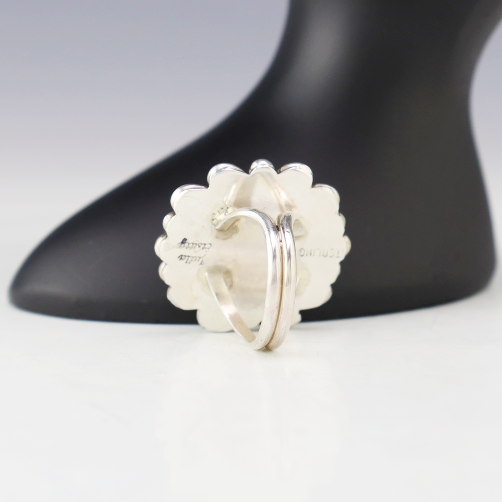Amazing inlay work! Zuni jewelry makers, Nancy and Sheldon Westika made this stunning ring. Made out of sterling silver and inlaid with Kingman Turquoise and Jet. Zuni artists are known for their lapidary work. The Westikas have been making jewelry since the 1970’s and they are known for their fine...