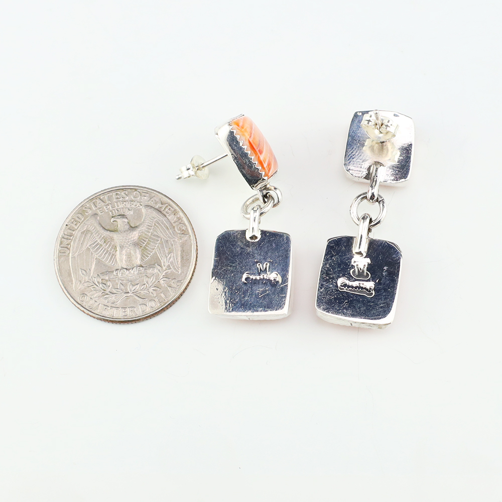 Beautiful earrings hand made out of sterling silver and Turquoise by Navajo silversmiths Eva and Linberg Billah. These fabulous earrings will become a versatile accessory in your jewelry collection. Weighs 20 grams. Signed. 1 3/8″ x 2 3/8″ The Navajos began working with silver in the 19th century, and began...