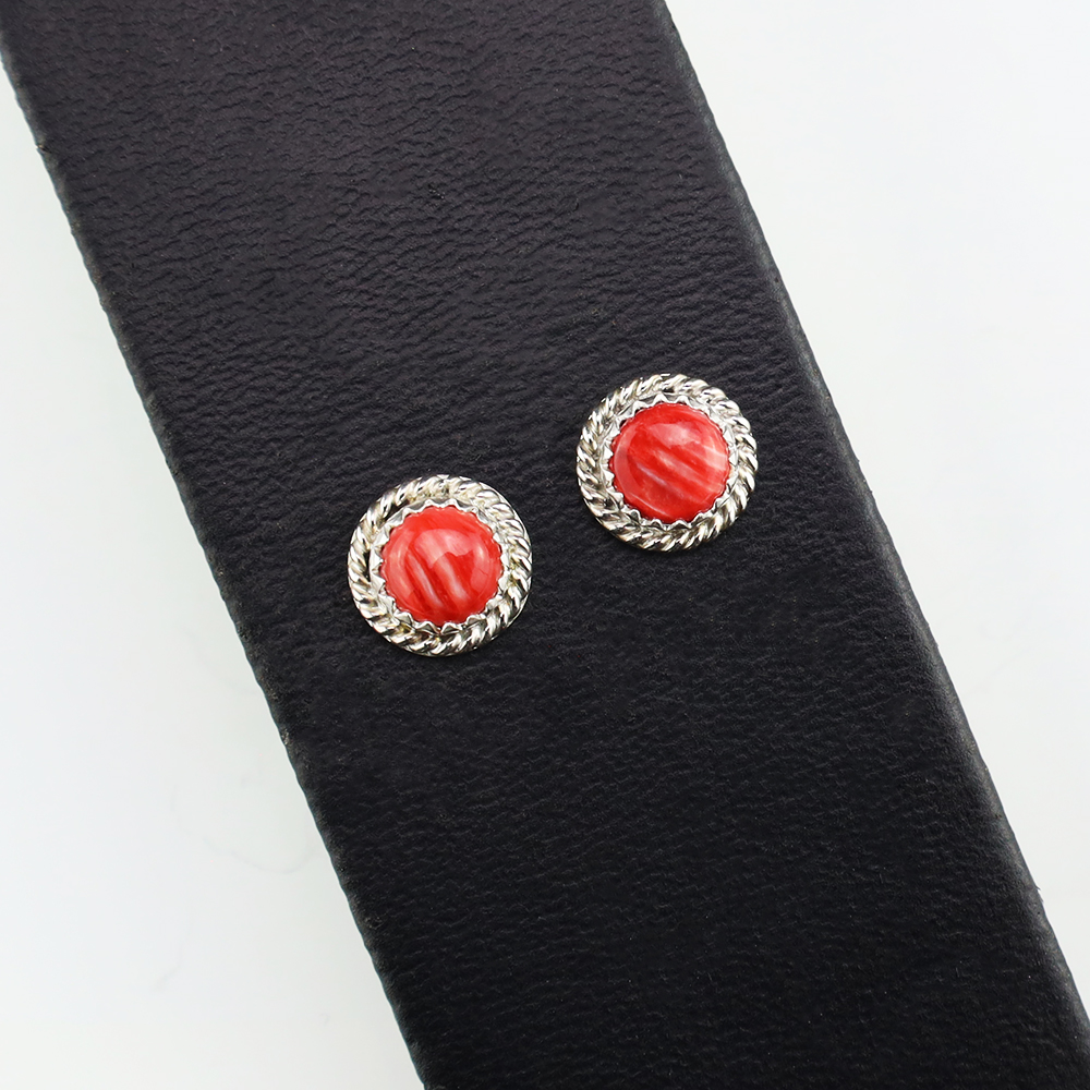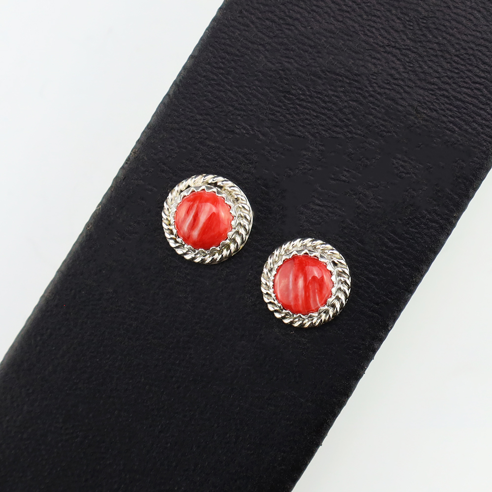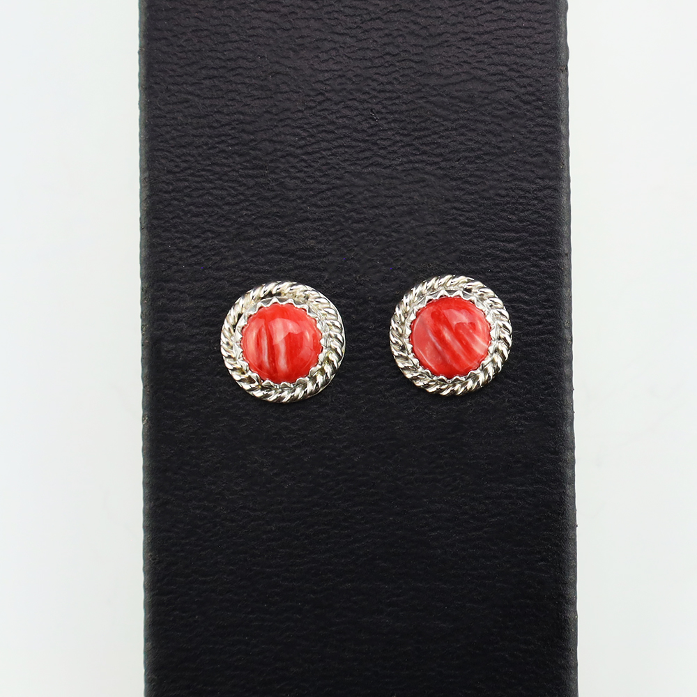 Lovely earrings hand made out of sterling silver and Spiny Oyster by Navajo silversmith Theresa Kinsel. These wonderful earrings will become a versatile accessory in your jewelry collection.