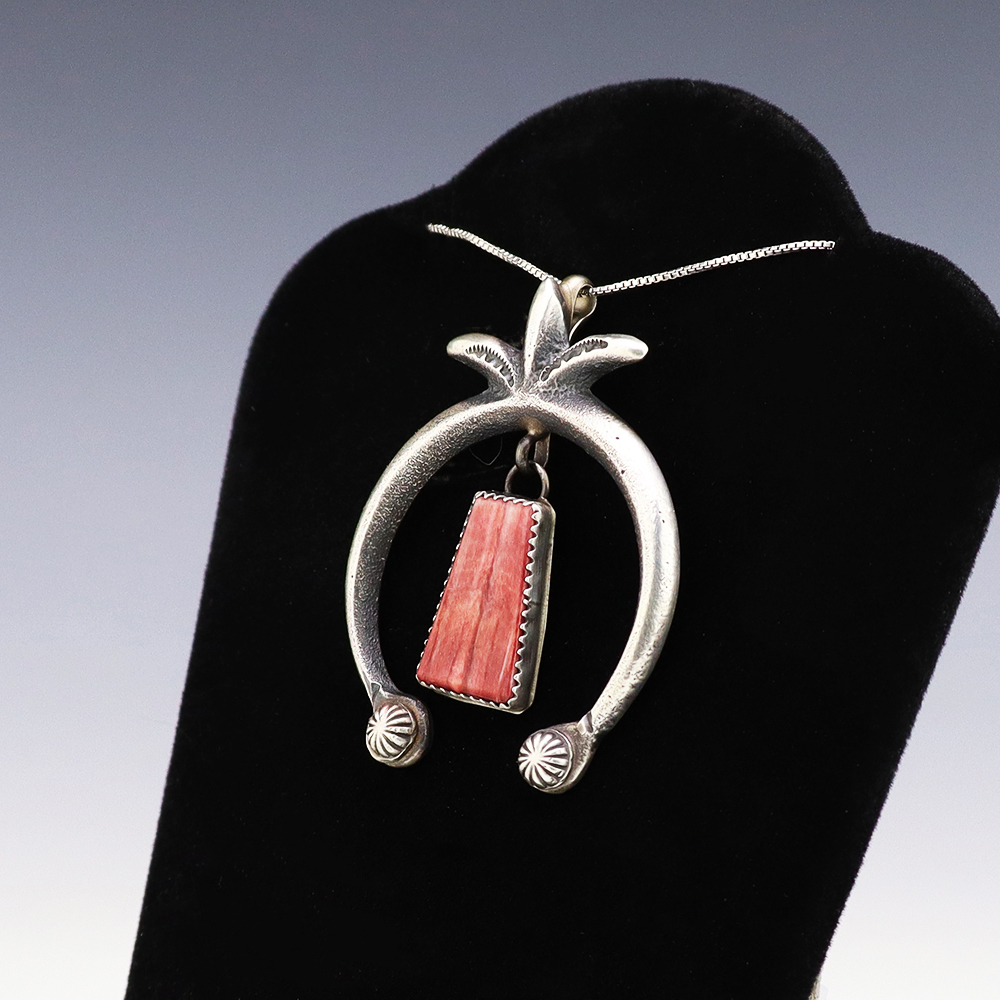 NAVAJO STERLING SILVER & RHODOCHROSITE PENDANT BY WILL DENETDALE