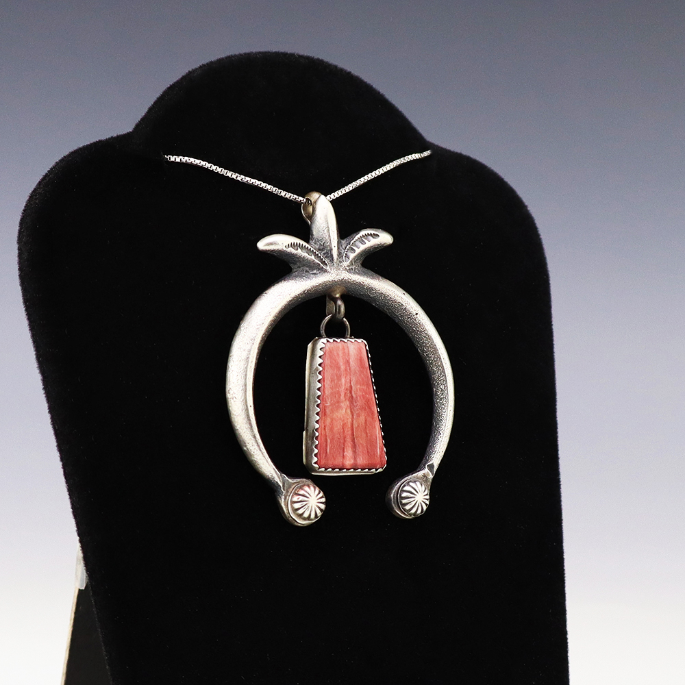 Navajo silversmith Will Denetdale made this outstanding pendant. Great Rhodochrosite stone, that is surrounded by great silver work. A timeless beauty that you will enjoy for years to come. Weighs 6 grams. (Chain not included) Signed 3/4” wide x 1 3/8” long Artist card included The Navajos began working with...