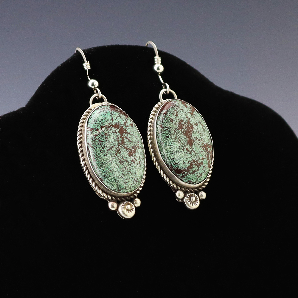 NAVAJO STERLING SILVER & TURQUOISE EARRINGS BY EVA & LINBERG BILLAH