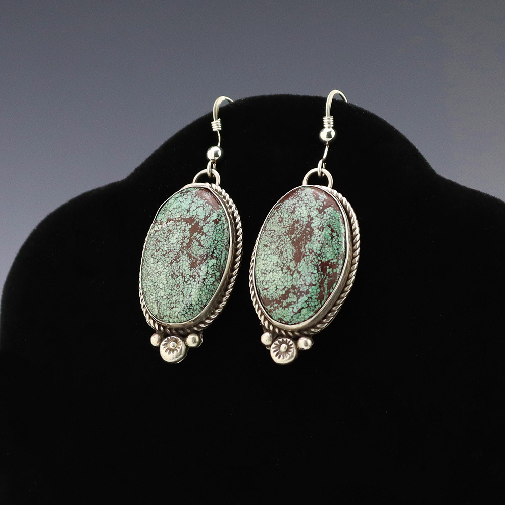 TURQUOISE & HENNA LIMESTONE EARRINGS BY NANCY AND SHELDON WESTIKA ZUNI