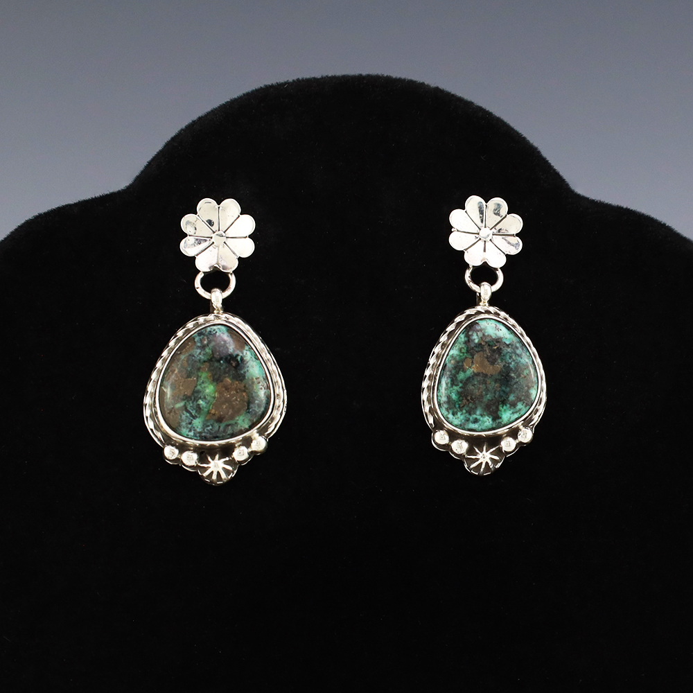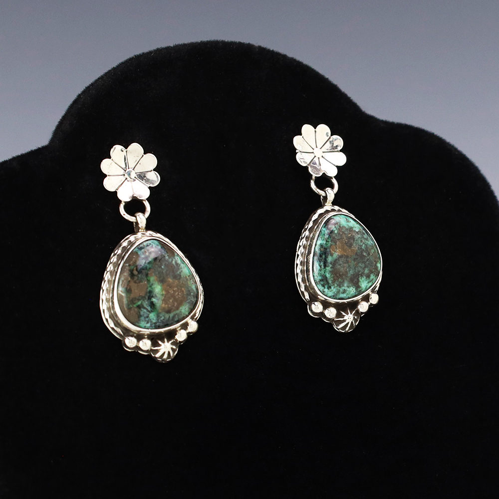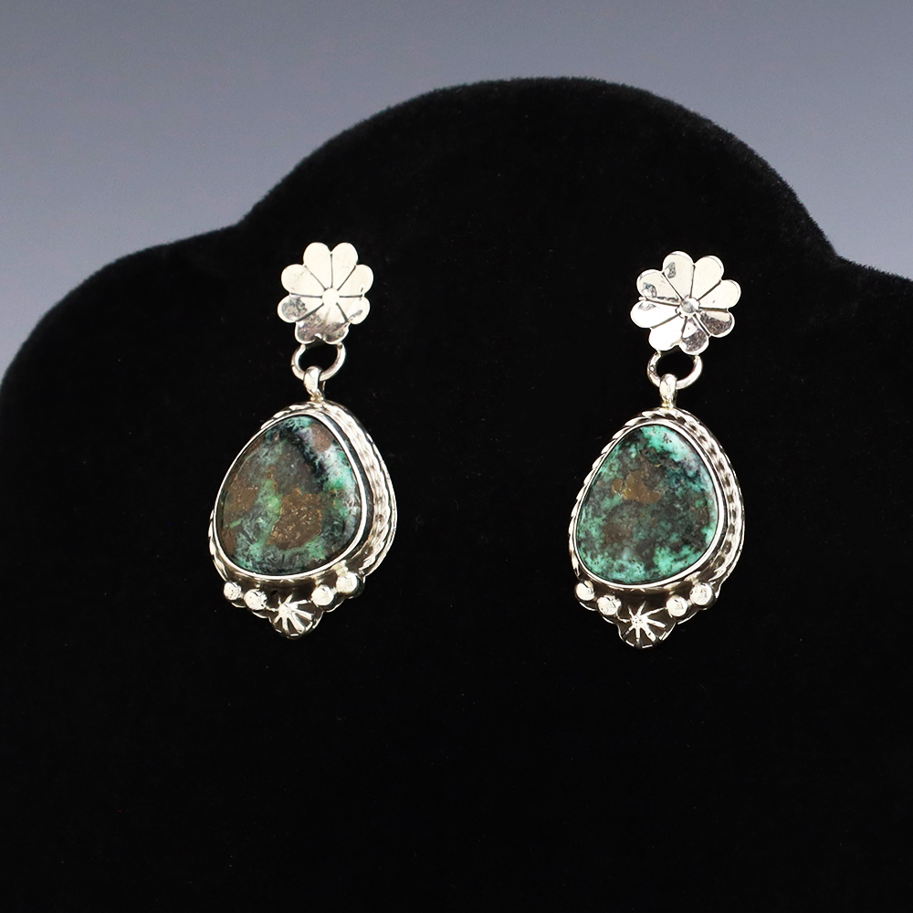 NATIVE AMERICAN ZUNI TURQUOISE EARRINGS BY NANCY & SHELDON WESTIKA