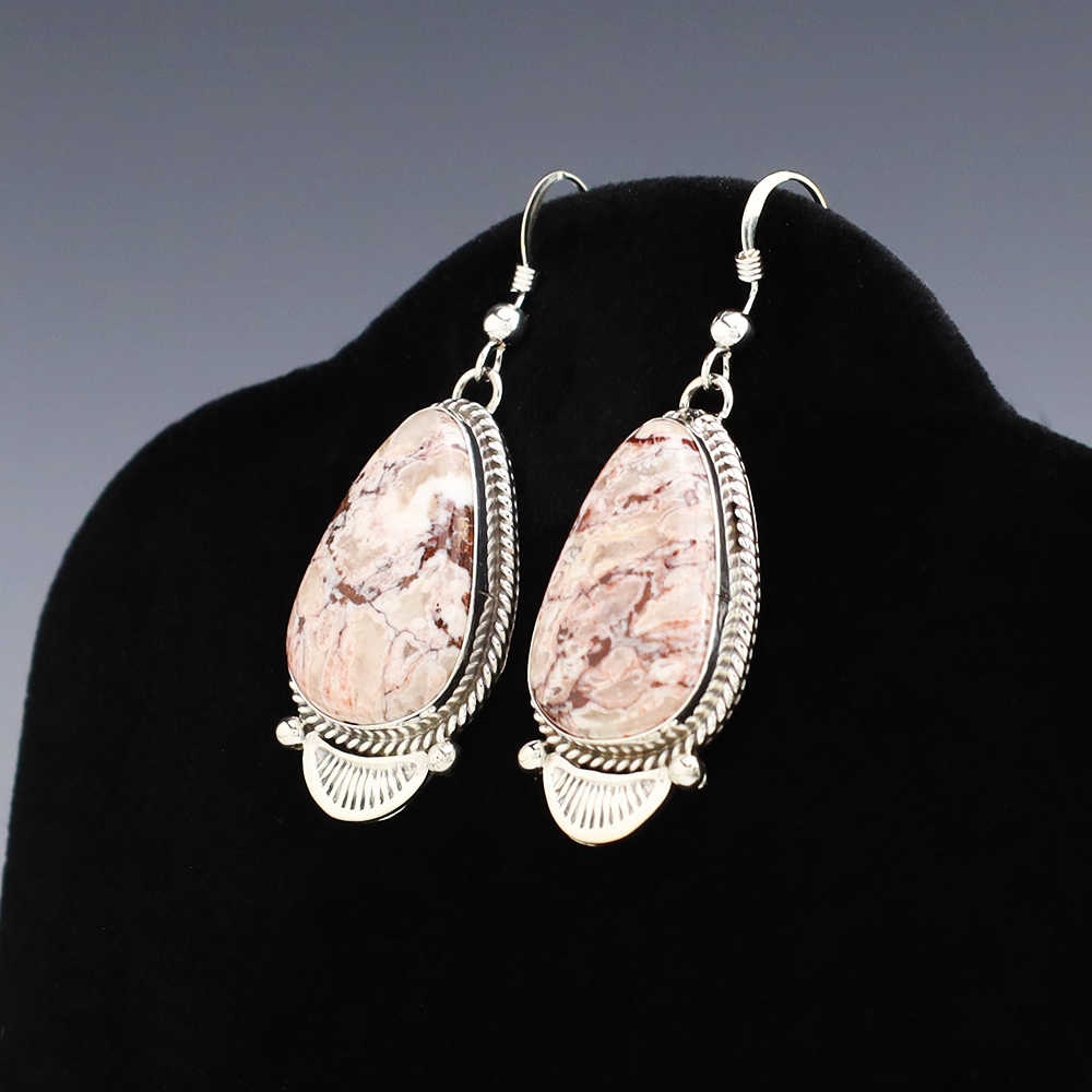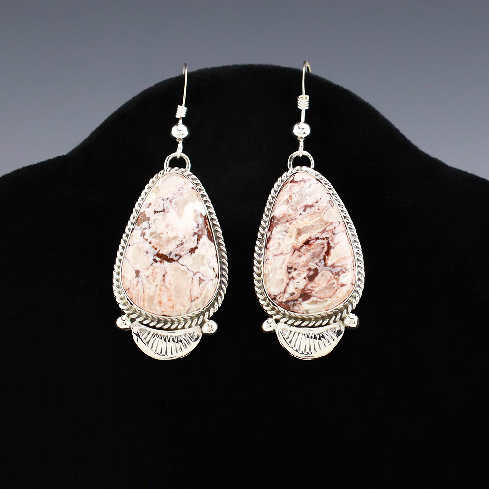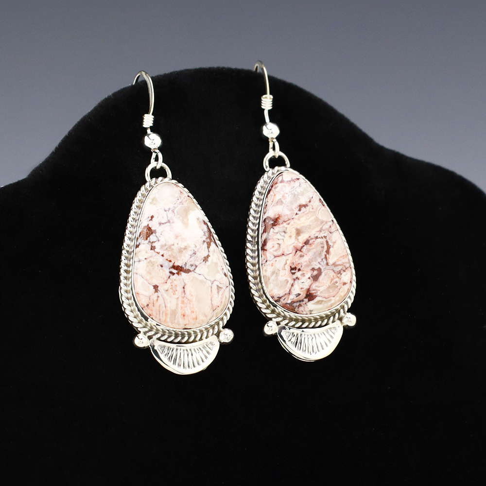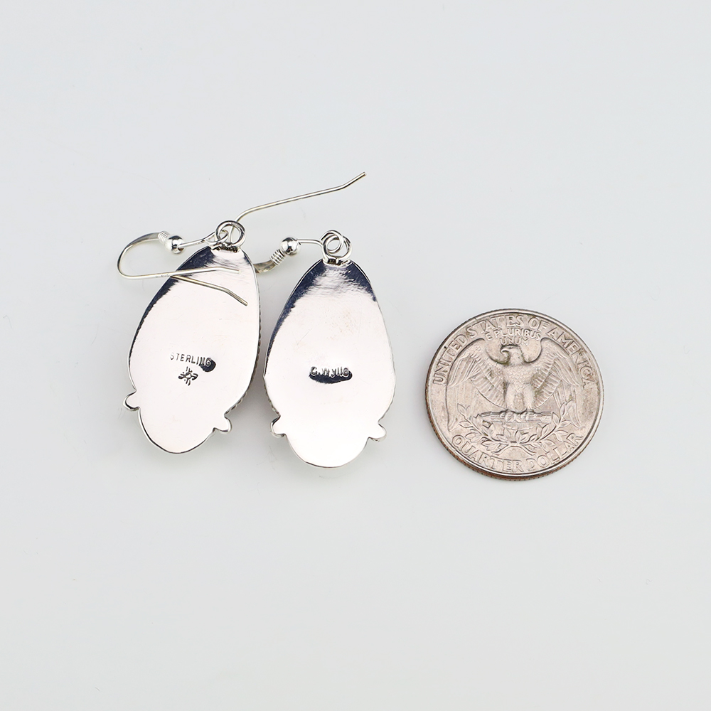 Lovely earrings hand made out of sterling silver and Wild Horse. Hand made by Navajo silversmith Carol Wylie. These fabulous earrings will become a versatile accessory in your jewelry collection. Weighs 10 grams. Signed.