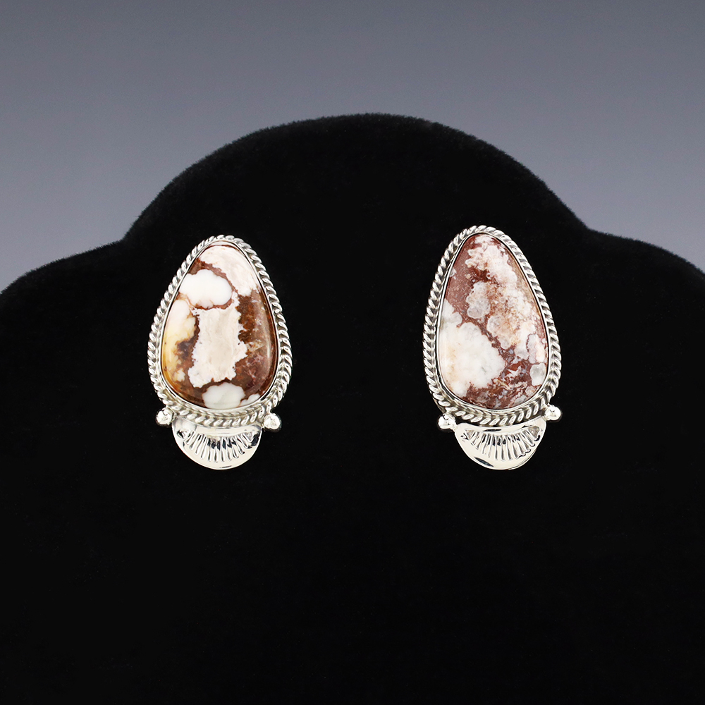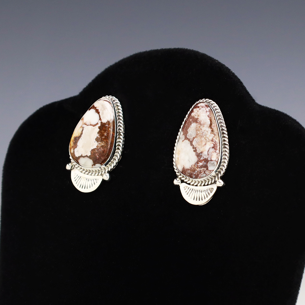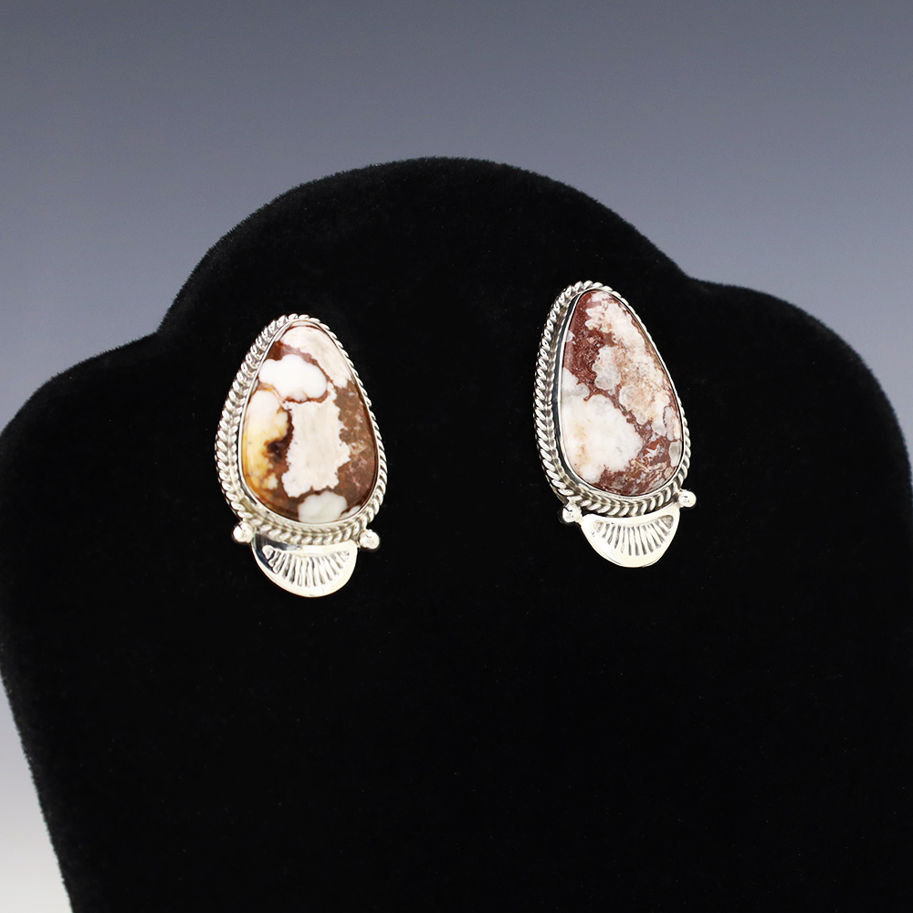 Lovely earrings hand made out of sterling silver and Wild Horse. Hand made by Navajo silversmith Carol Wylie. These fabulous earrings will become a versatile accessory in your jewelry collection. Weighs 10 grams. Signed.