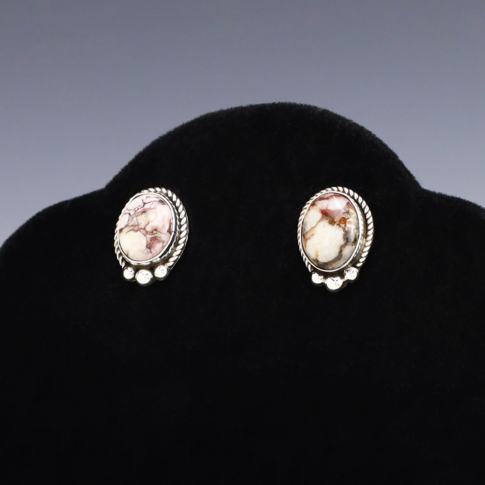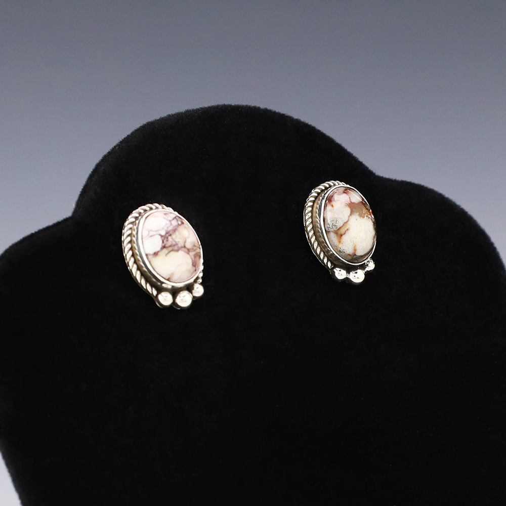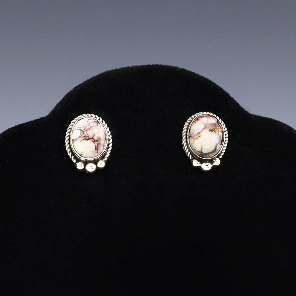 Lovely earrings hand made out of sterling silver and Wild Horse. Hand made by Navajo silversmith Lee Sandoval These fabulous earrings will become a versatile accessory in your jewelry collection. Weighs 4 grams. Signed.