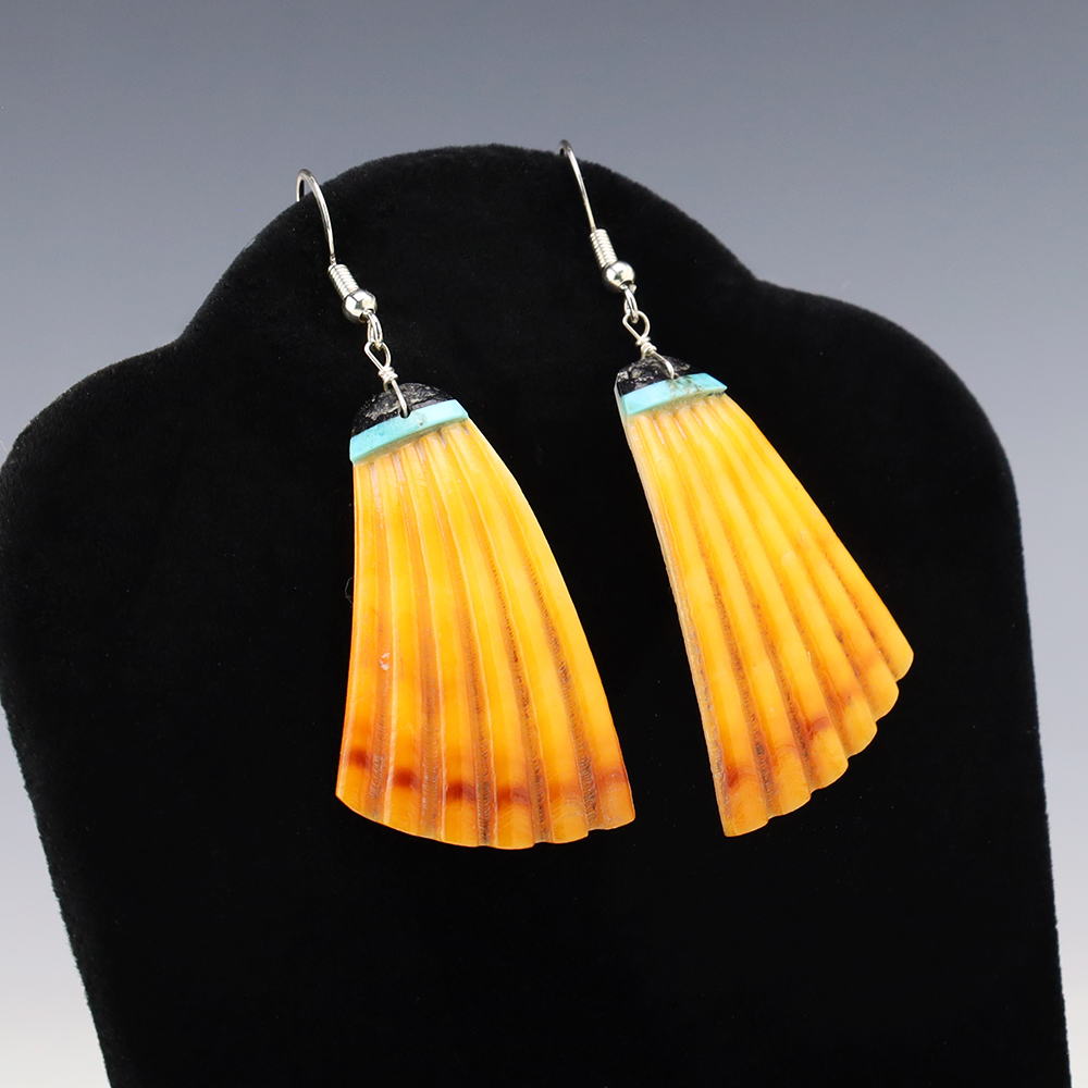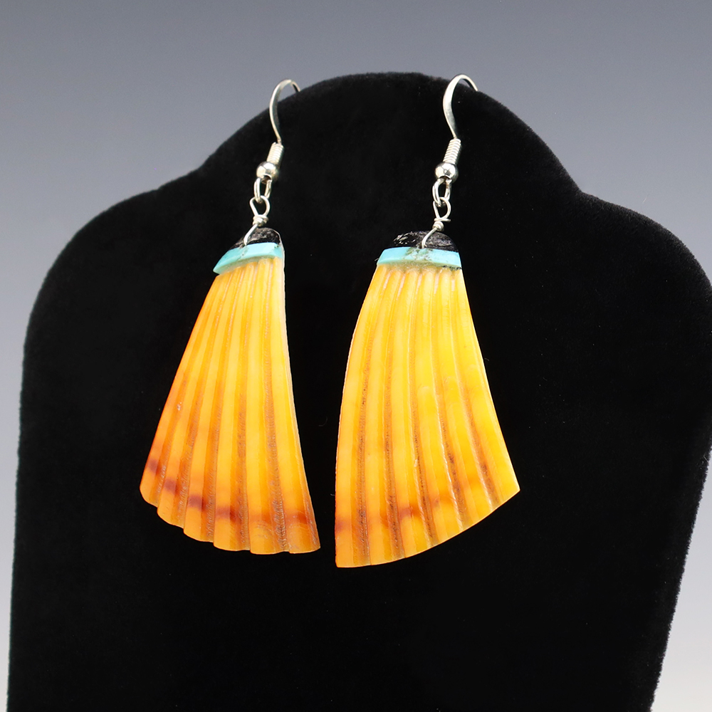 TURQUOISE & HENNA LIMESTONE EARRINGS BY NANCY AND SHELDON WESTIKA ZUNI