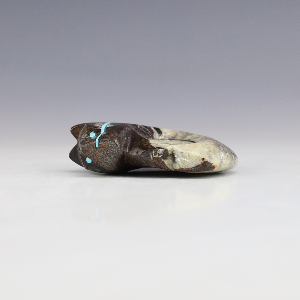 Zuni fetishes are carvings made from various materials by the Zuni people. Traditionally, fetishes served a ceremonial purpose for their creators and they represented animals and figures that were part of their culture. Today, as a form of Native American Art, they are sold to collectors worldwide. With a myriad of materials like turquoise, shell, jet, marble, serpentine, and much more, Zuni fetish carvers are able to create carvings in a style of their own.