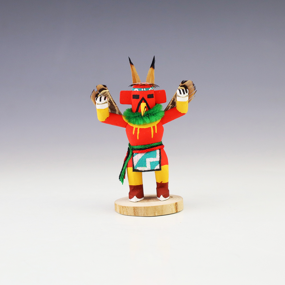 The Red Tail Hawk Kachina is a protector of important sacred katsinam. He is also seen a warrior, an enforcer, and a guard.