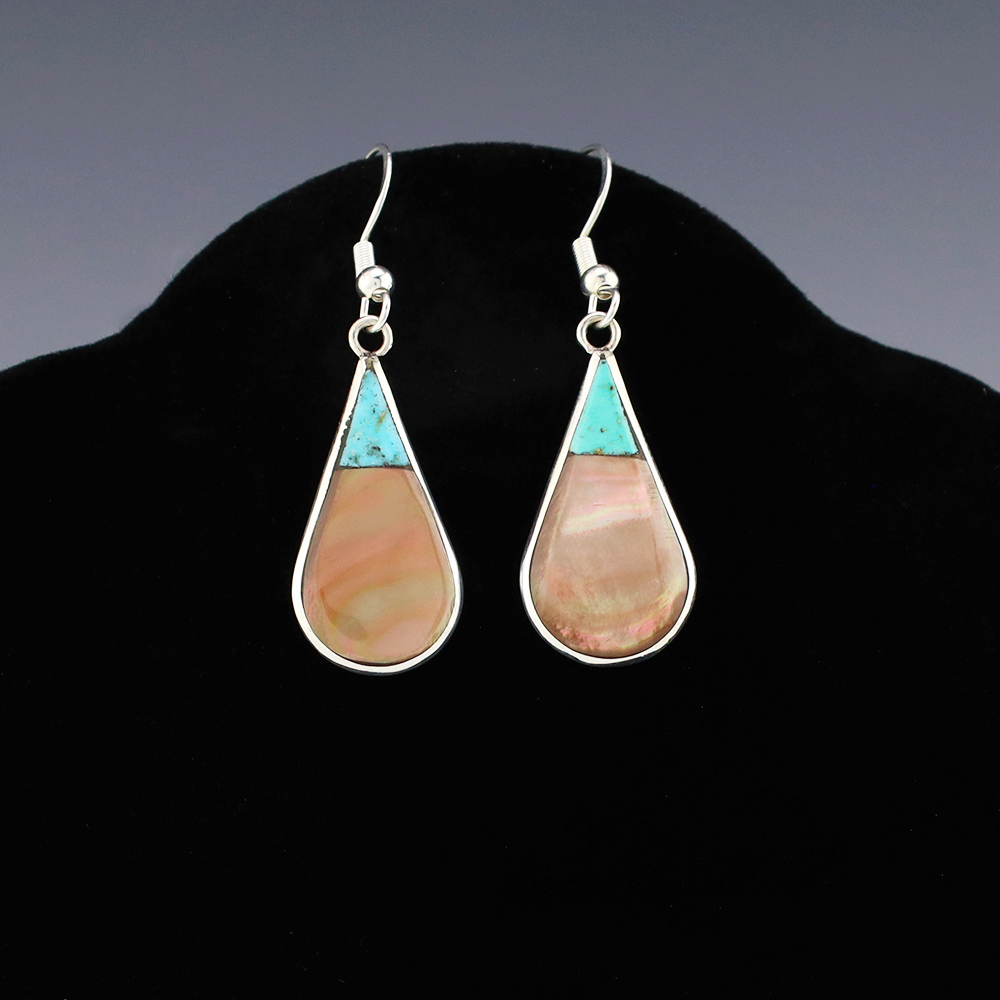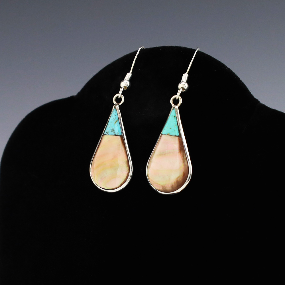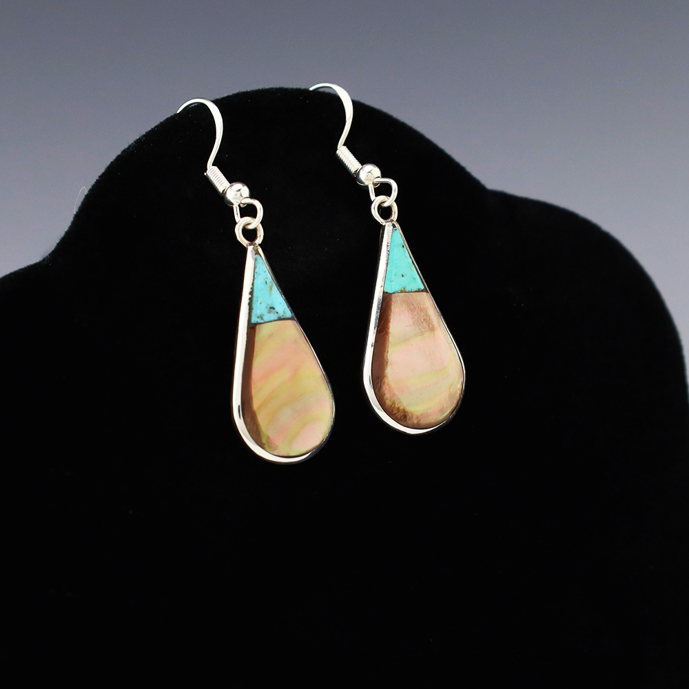 NATIVE AMERICAN ZUNI TURQUOISE EARRINGS BY NANCY & SHELDON WESTIKA