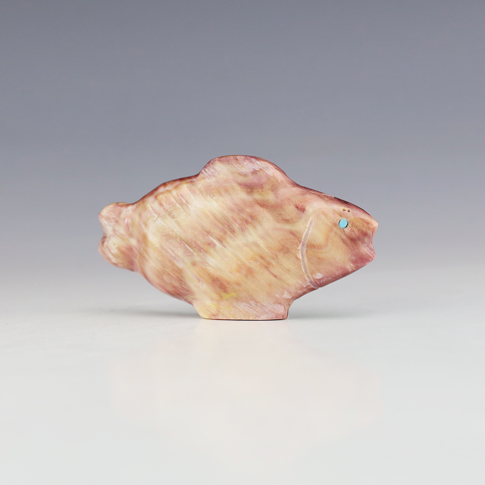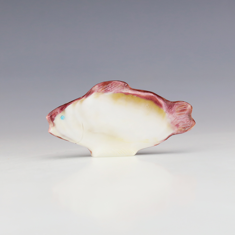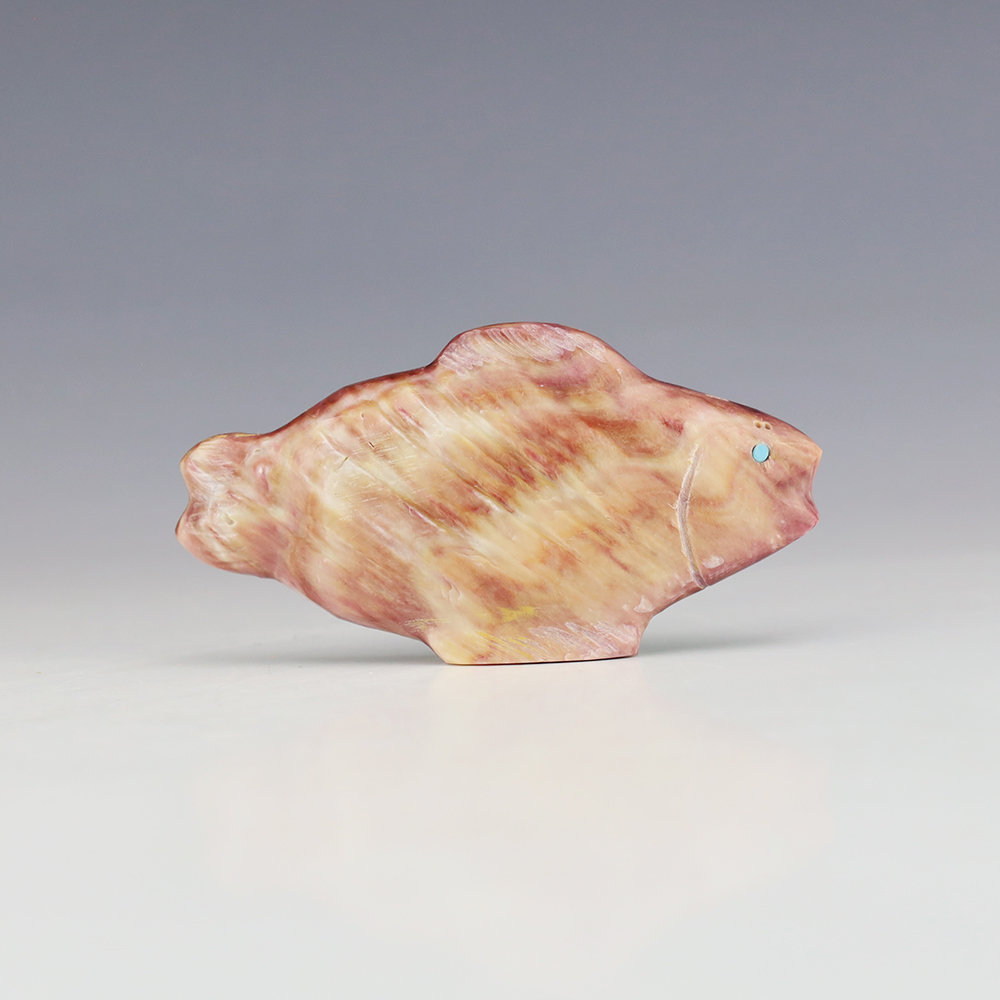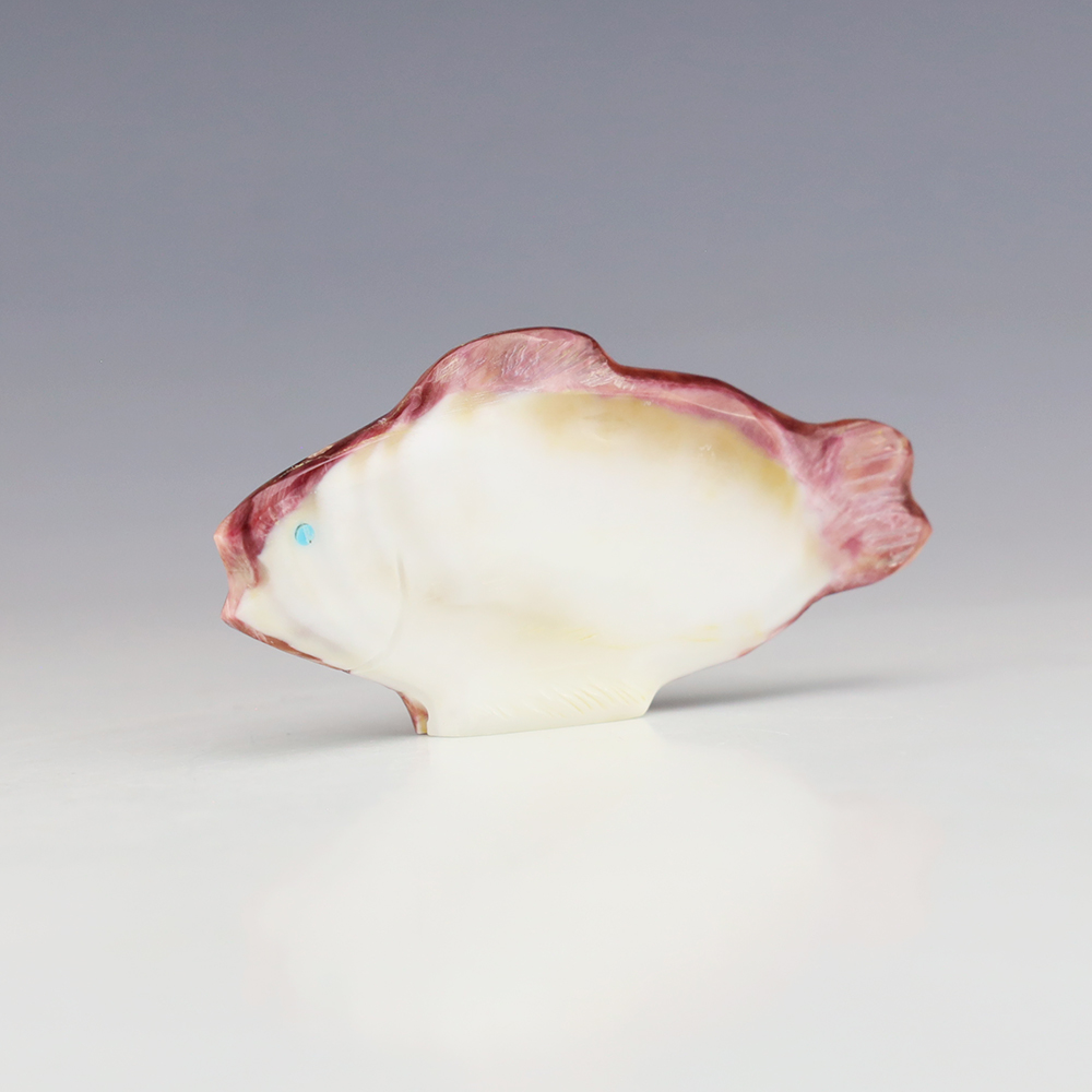 Zuni fetish artists Leland Boone and Daphne Quam made this fabulous Fish. Hand carved out of Spiny Oyster. A great addition to your Native American or Zuni fetish collection. (note-there is natural pitting in the shell)