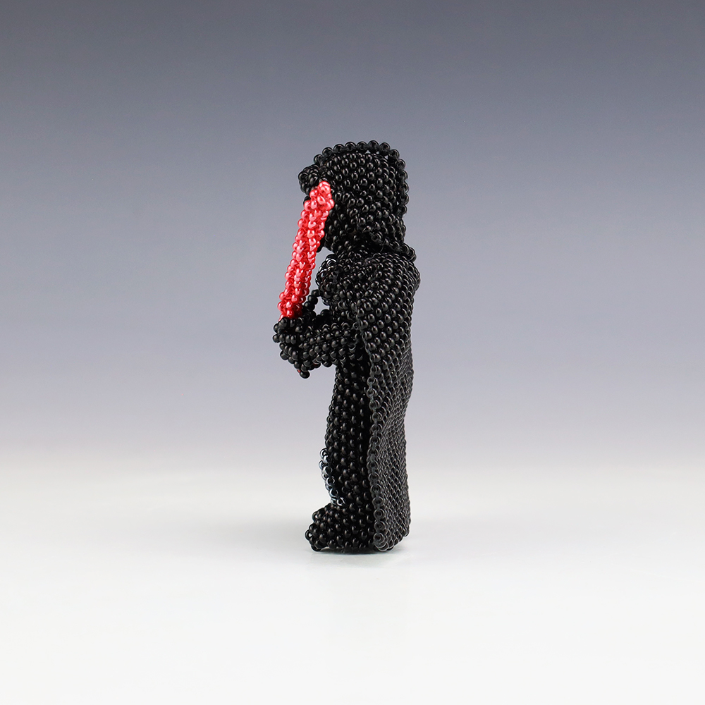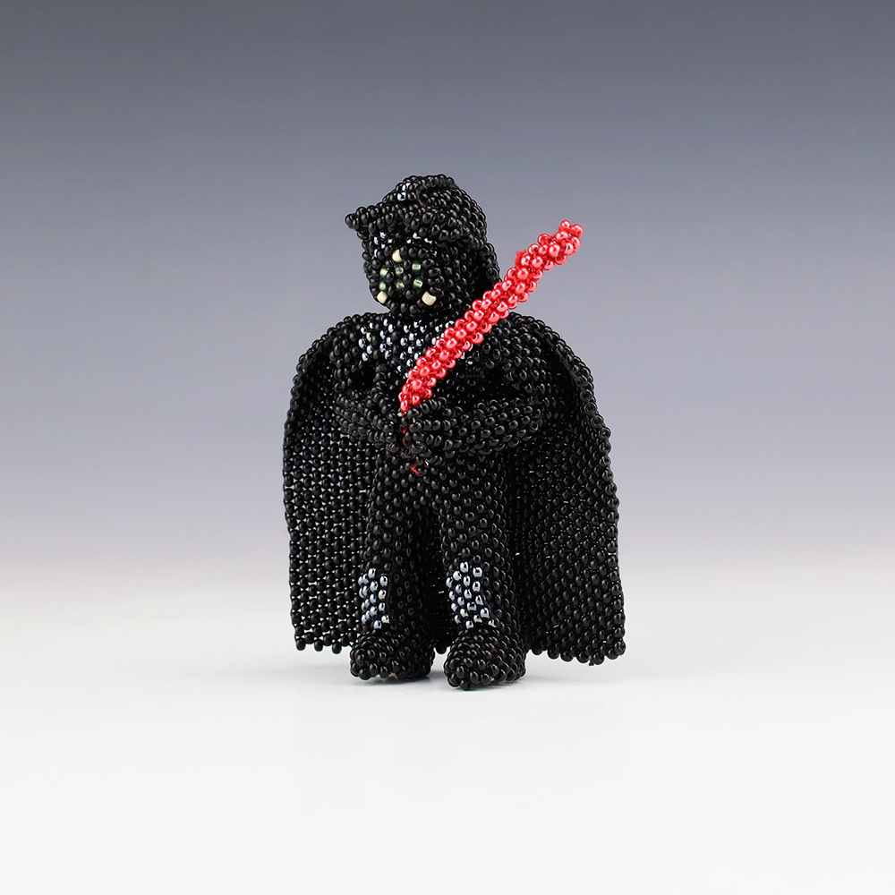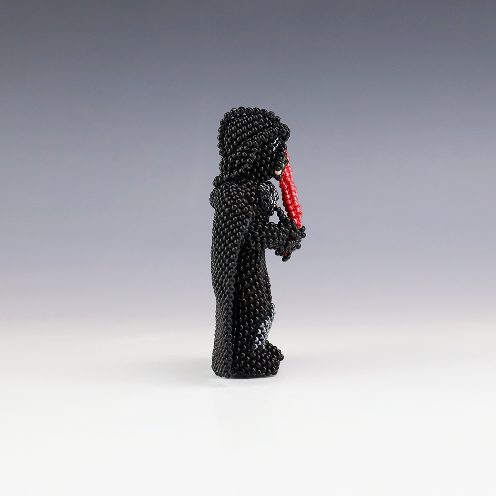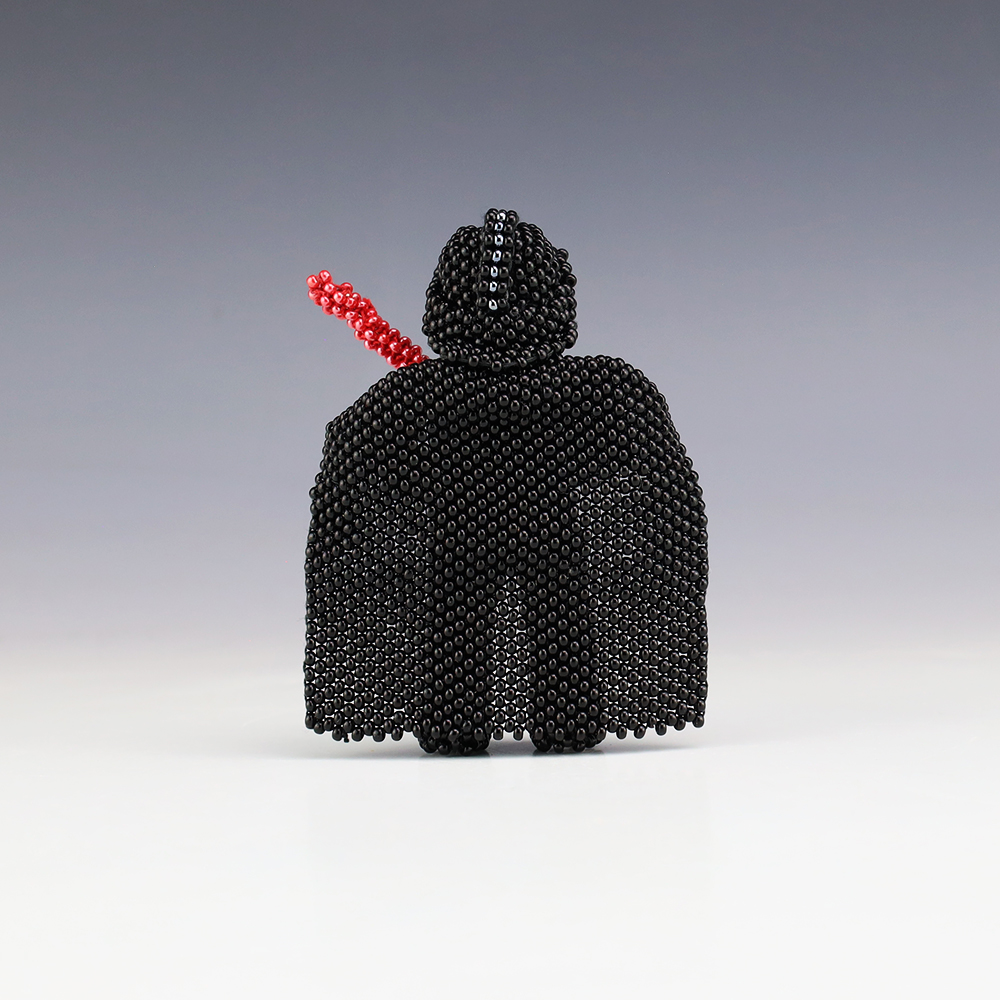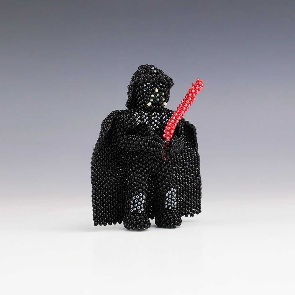 Zuni artist Alesia Poncho hand Darth Vader from Star Wars. Using one seed bead at a time, they flawlessly created this piece of beadwork with the peyote stitch. A unique addition to your Zuni Beadwork or Native American art collection. Signed