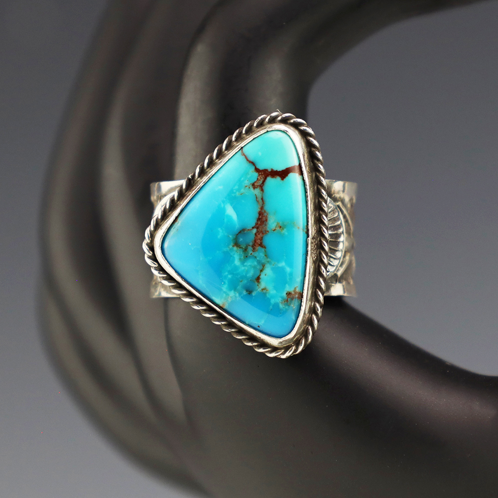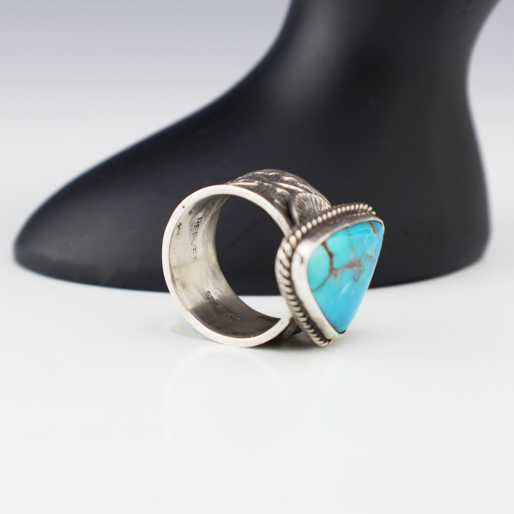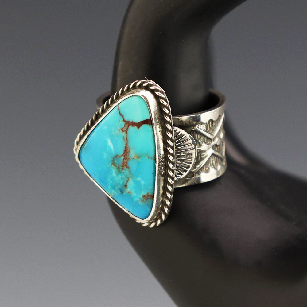 NATIVE AMERICAN TURQUOISE & JET RING BY NANCY & SHELDON WESTIKA 11 1/4