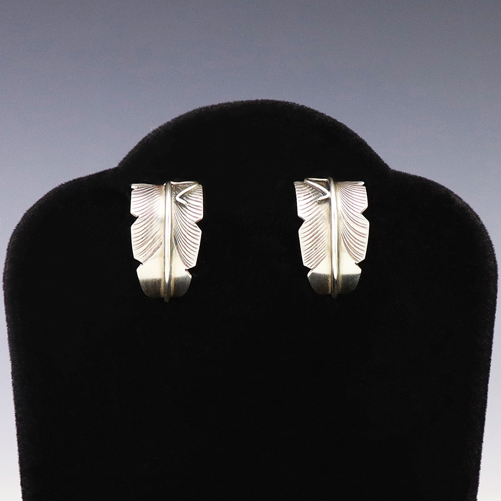 Zuni jewelry makers, Nancy and Sheldon Westika created these gorgeous earrings. The Westikas have been making jewelry since the 1970’s and they are known for their fine inlay work. Made out of sterling silver and inlaid with Kingman Turquoise. Weighs 2 grams. Signed 7/16” wide x 7/8” tall 1 1/4″...