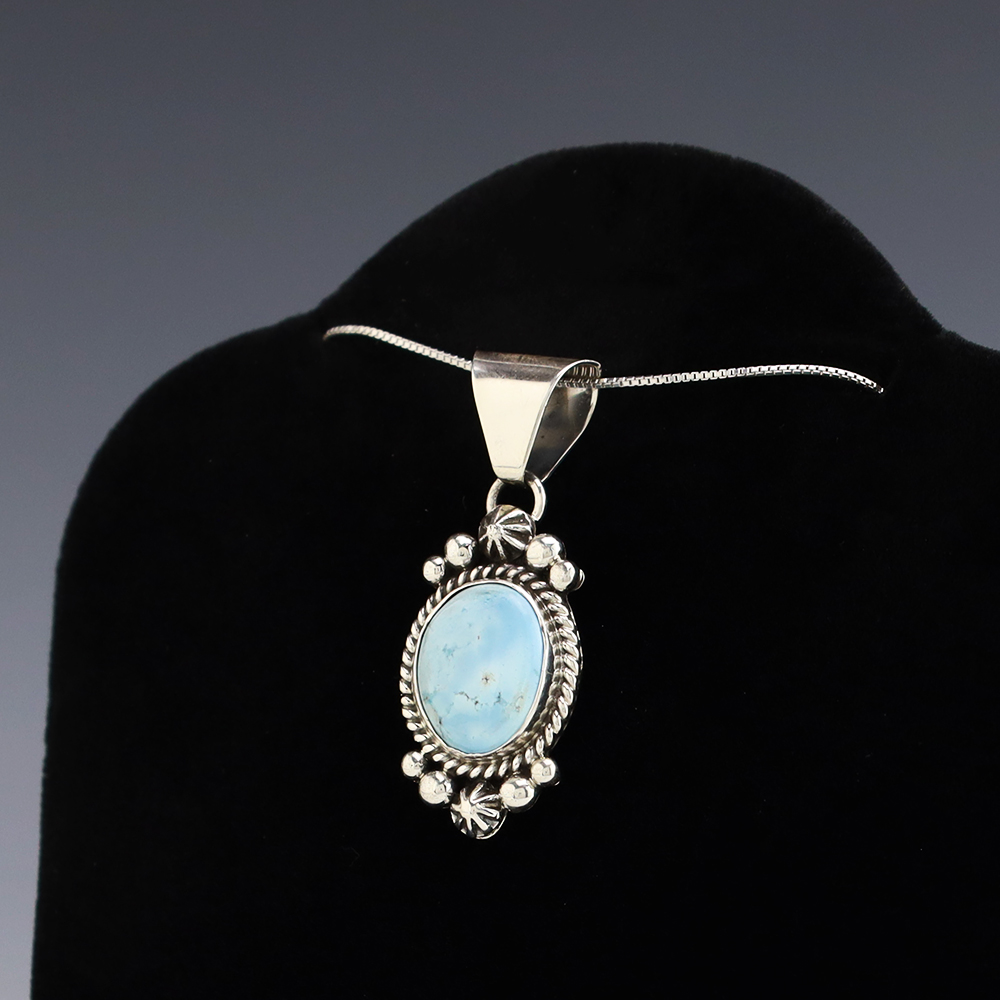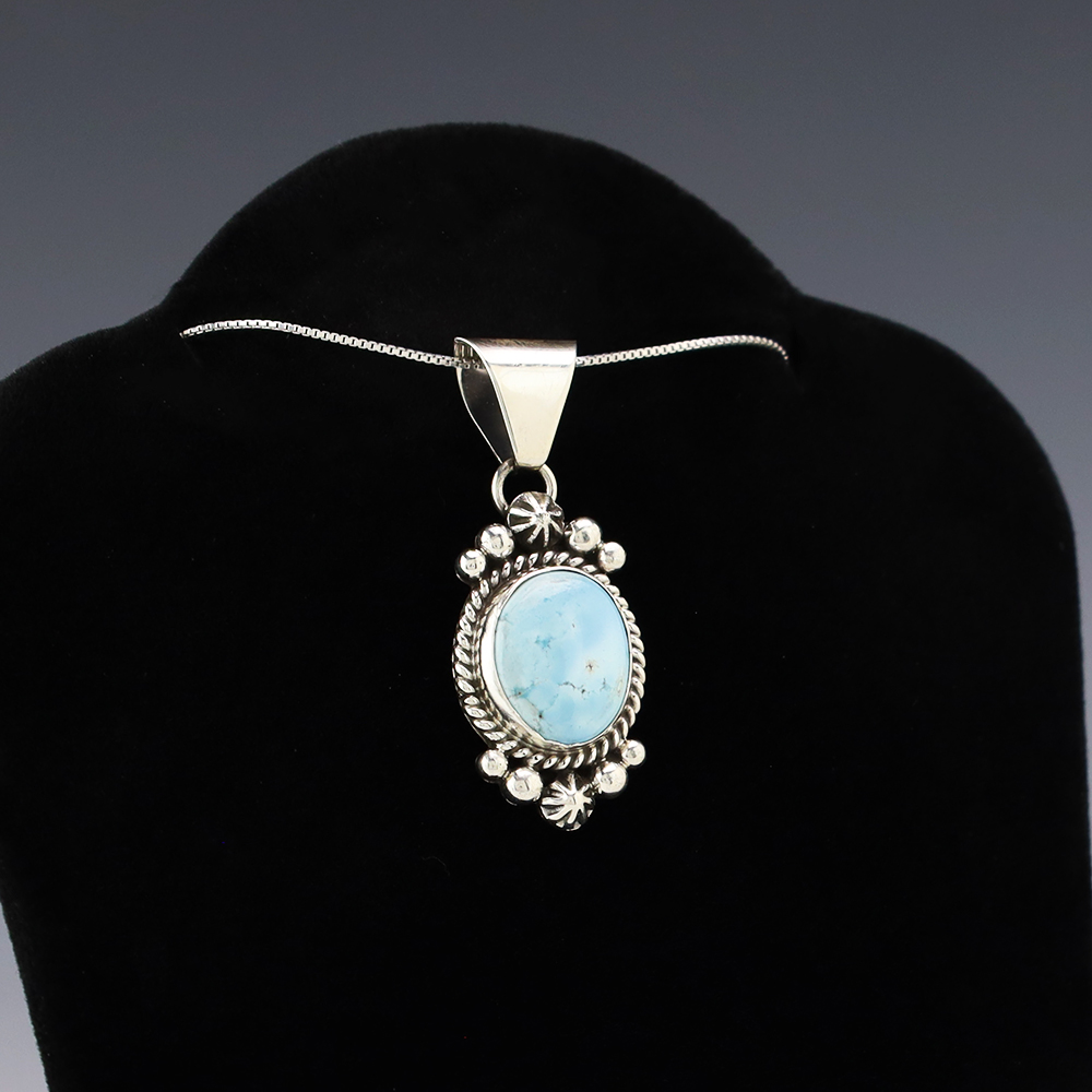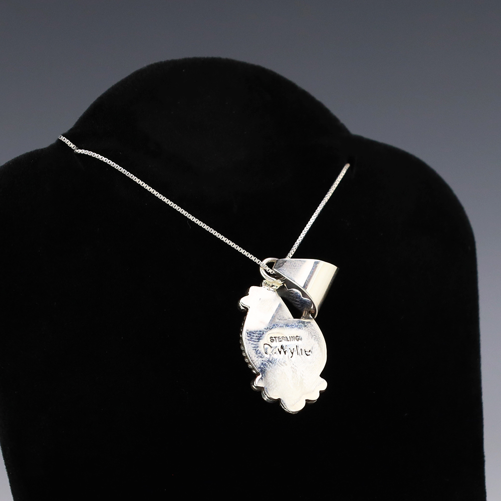 Lovely pendant hand made out of sterling silver and Golden Hills Turquoise by Navajo artist Darrell Wylie. A timeless beauty that you will enjoy for years to come. Weighs 6 grams. Signed (Chain not included)