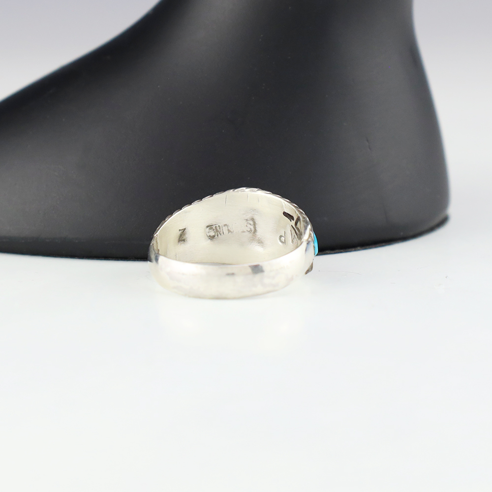 NATIVE AMERICAN TURQUOISE & JET RING BY NANCY & SHELDON WESTIKA 11 1/4