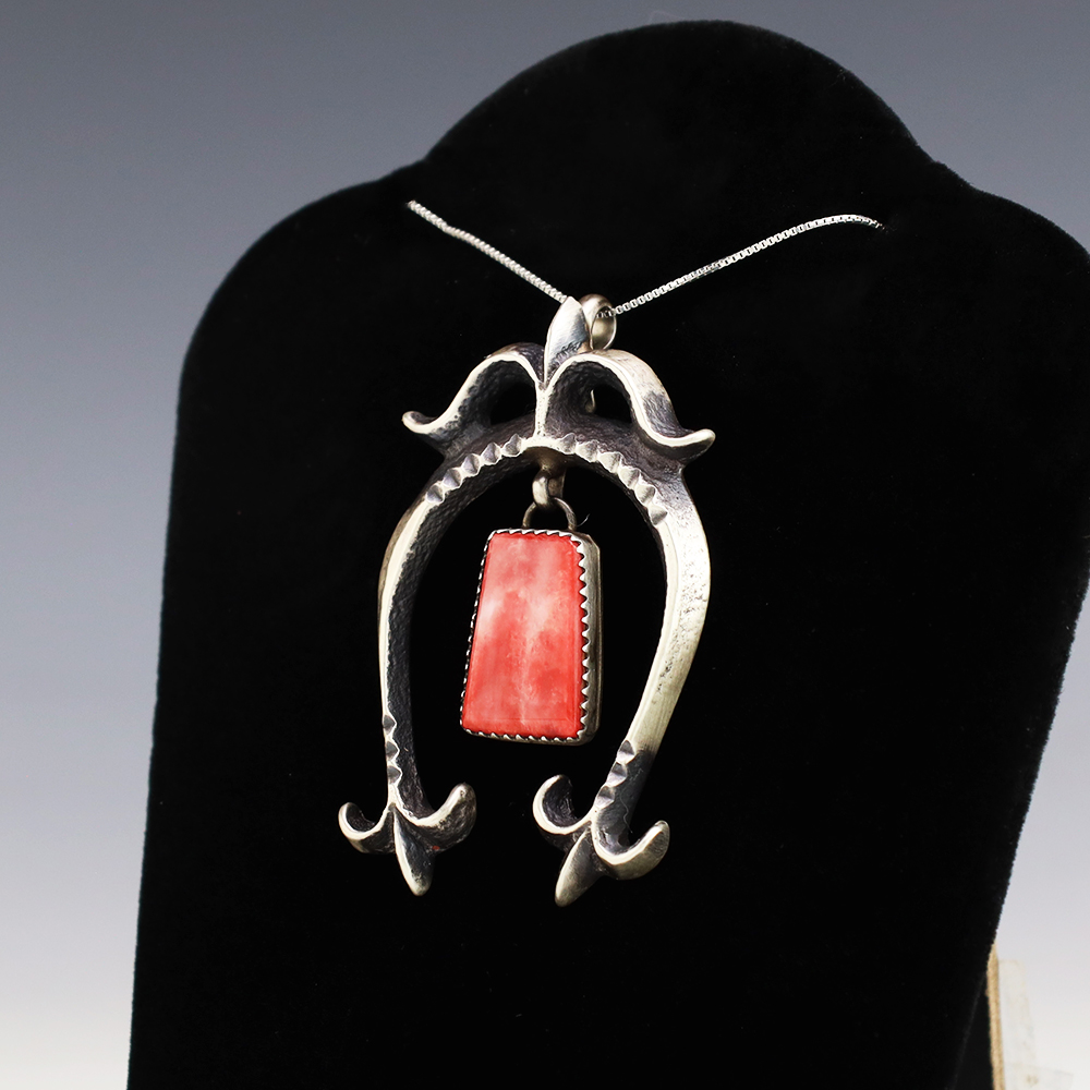 The Navajos began working with silver in the 19th century, and began making things like buckles, bridles, buttons, rings, canteens, hollow beads, earrings, crescent-shaped pendants (called “najas”), bracelets, crosses, powder chargers, tobacco canteens, and conchos (for belts). Their silversmithing skills has evolved and changed throughout the years, and in about 1880 Navajo silversmiths started to set turquoise in their silver work. Traditionally, Navajo artists worked with jewelry techniques like repousee and stamp work, but today they explored in other Native American jewelry making techniques like Zuni inlay work and Hopi overlay work.