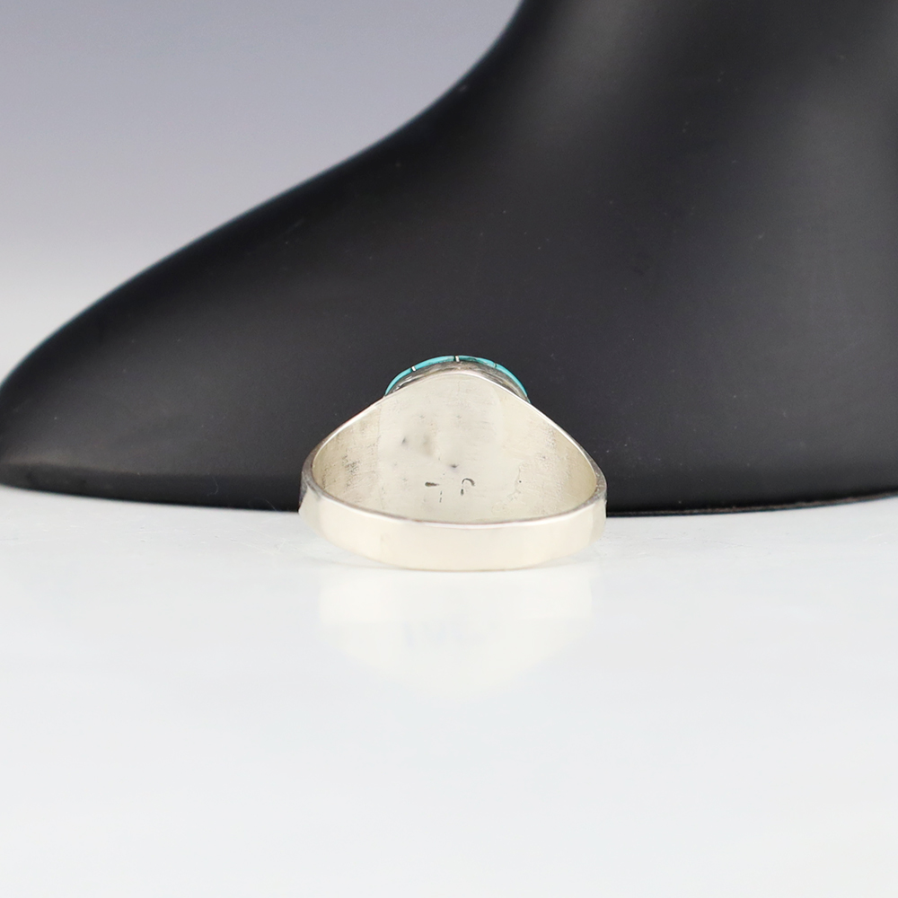 Zuni artist Johnson Laweka made this lovely ring out of sterling silver and Turquoise. Weighs 6 grams. Size 9 1/2. Signed