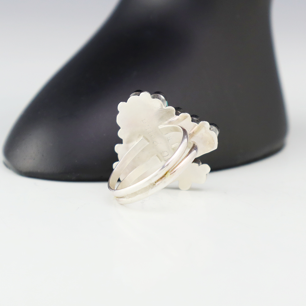 NATIVE AMERICAN TURQUOISE & JET RING BY NANCY & SHELDON WESTIKA 11 1/4