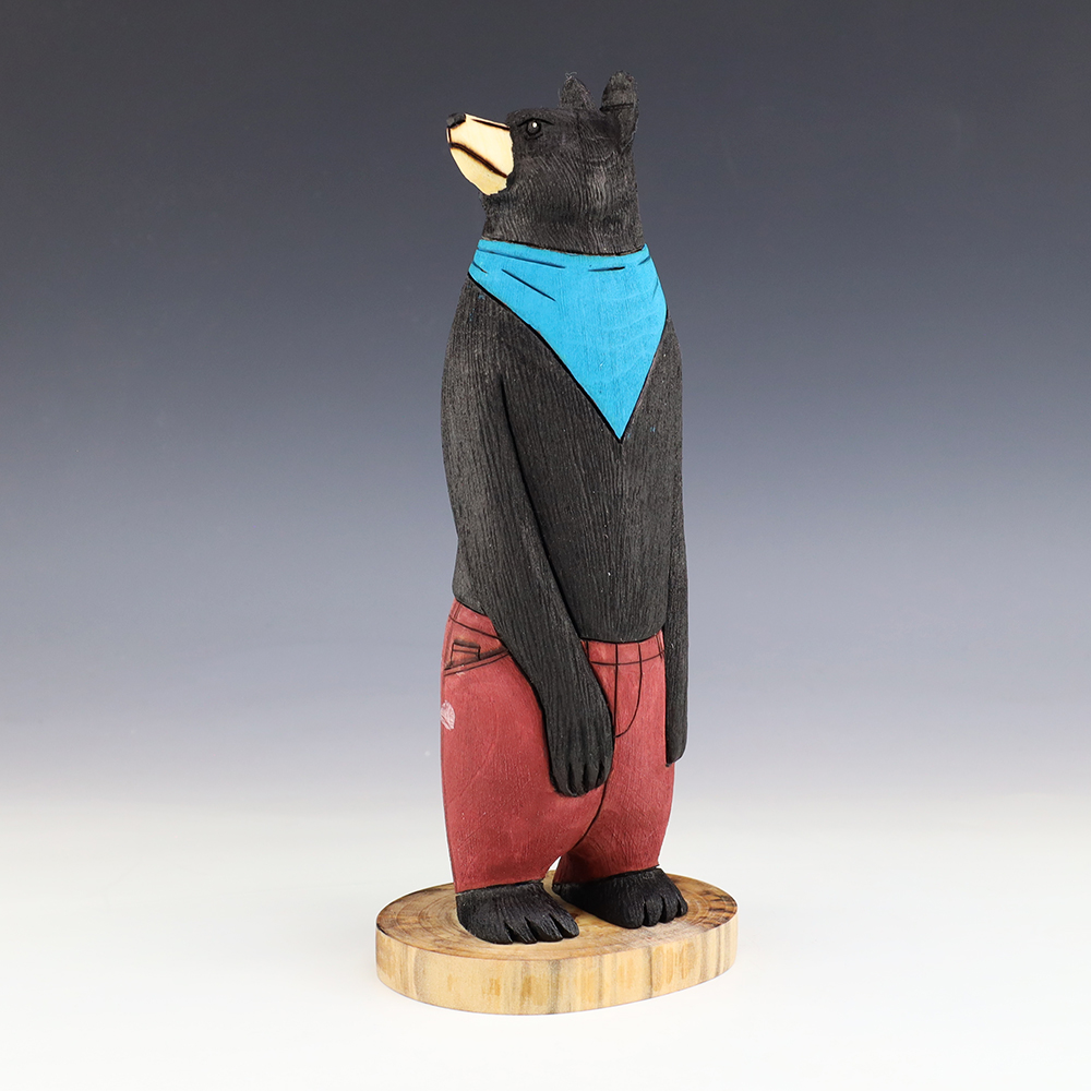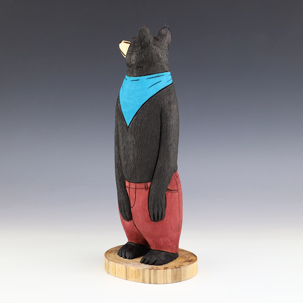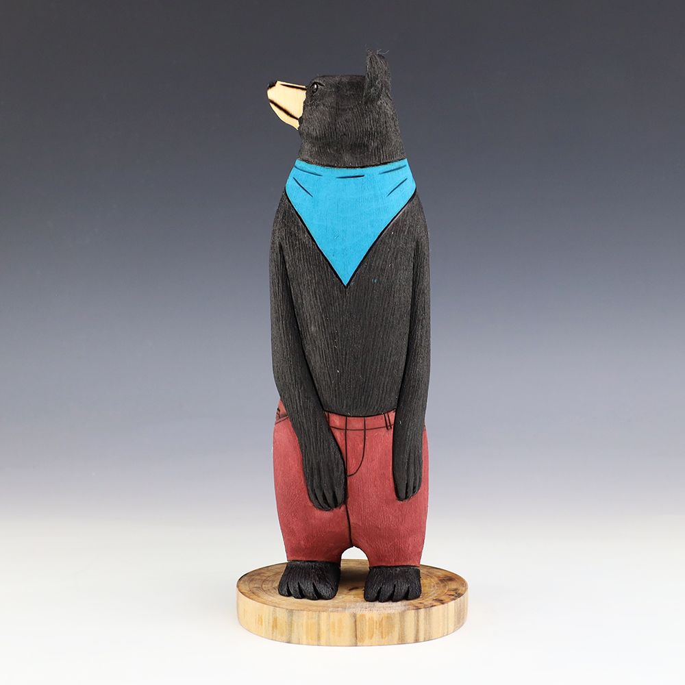 This fabulous Bear is hand crafted by Navajo folk art artists Ray and Orleen Lansing. Carved out of cottonwood with an amazing amount of detail. This bear carving would make a wonderful addition to your Native American or Navajo Folk art collection. Signed