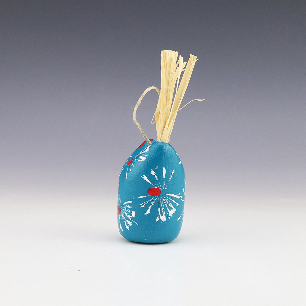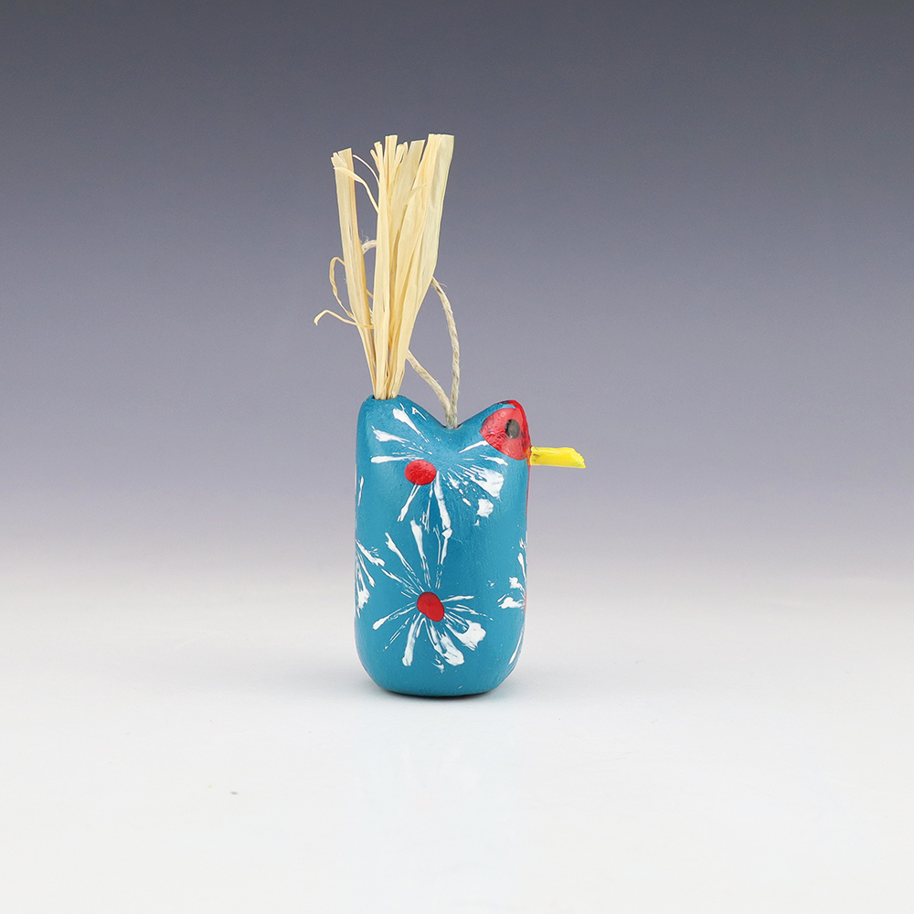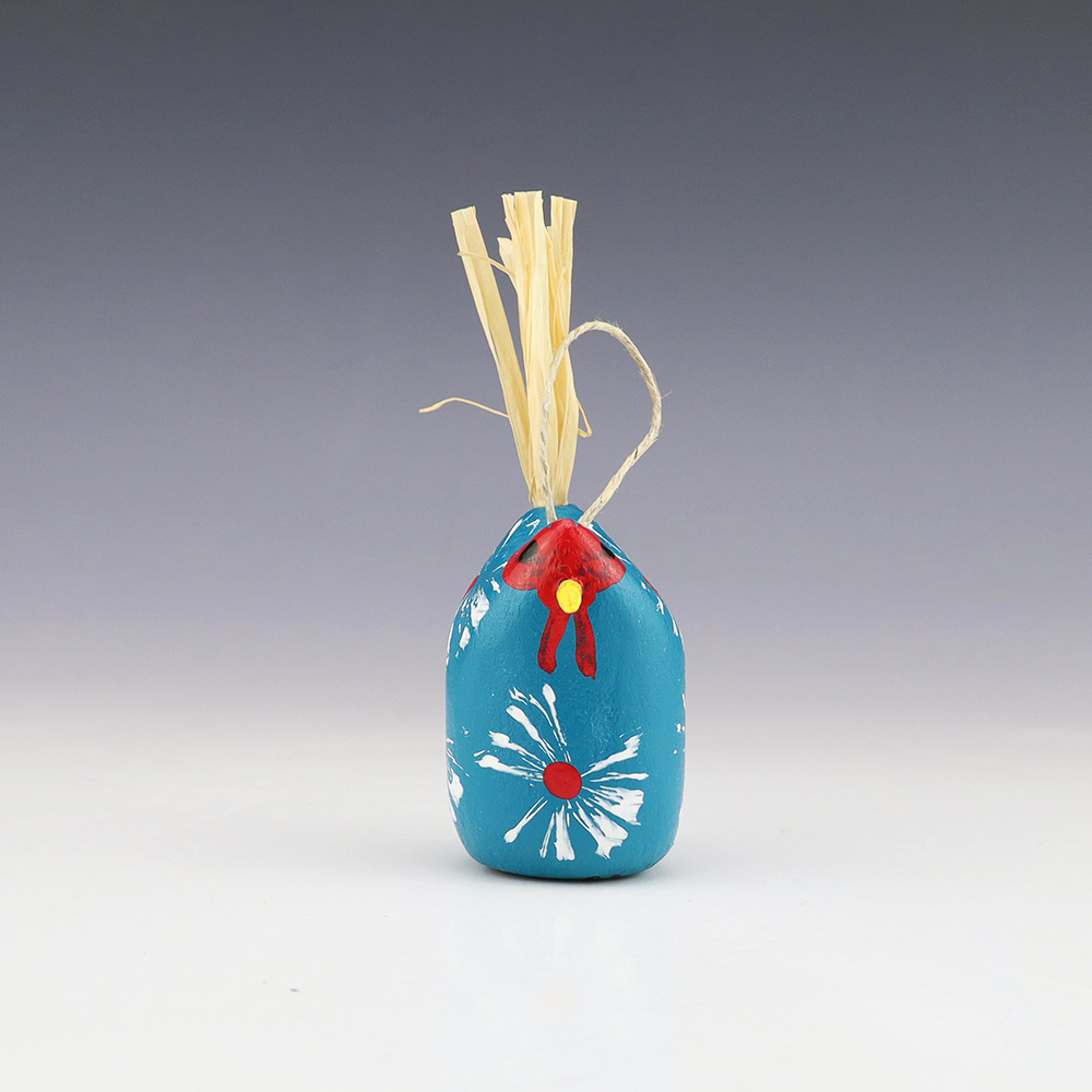 Edith John is the daughter of the late Woody Herbert who was known for his folk art Brahma bulls. Edith started carving while helping her father. Edith’s folk art chickens elicit happiness wherever they roost! Bold colors and patterns, that will brighten your Navajo folk art or ornament collection. Hand carved out of wood with a straw tail.