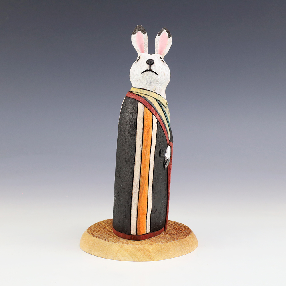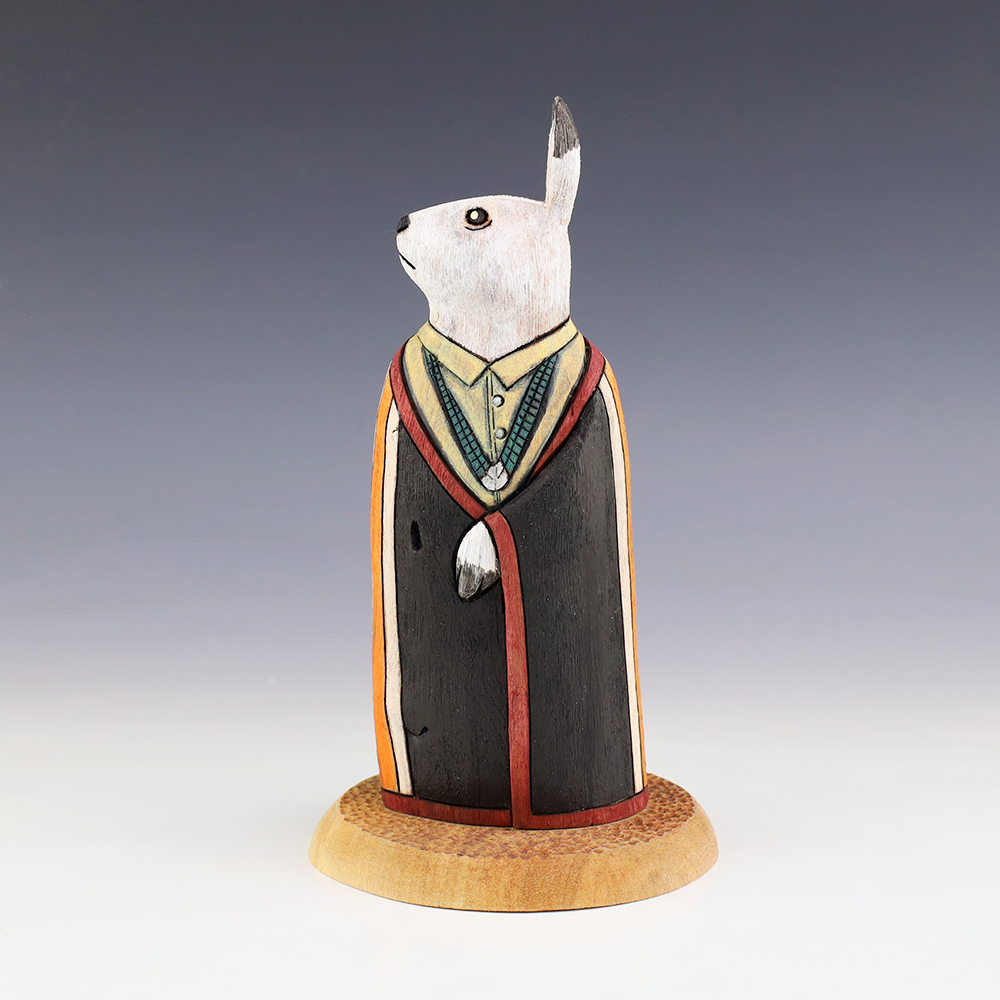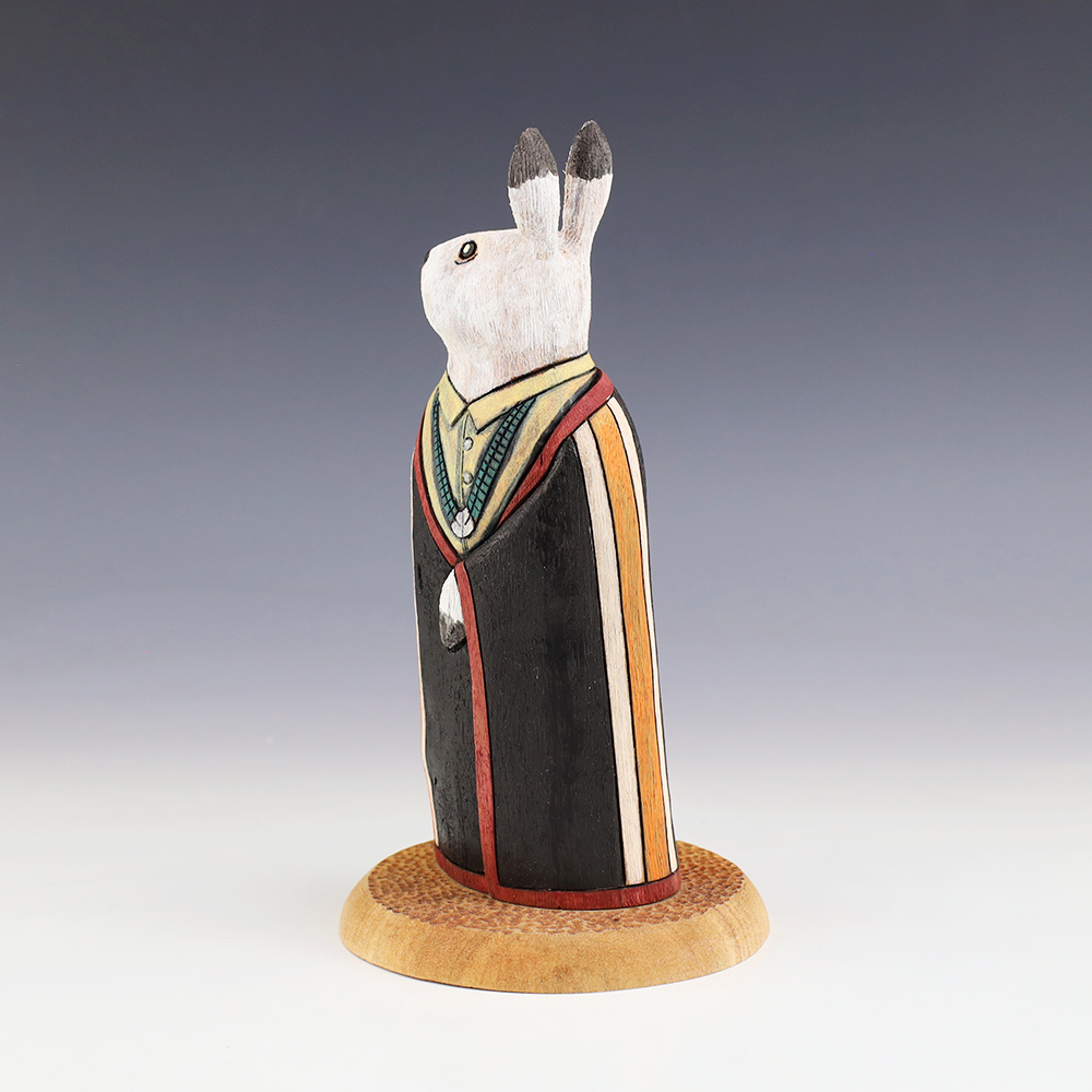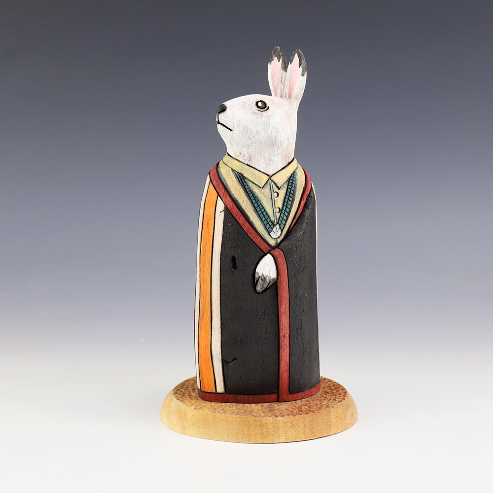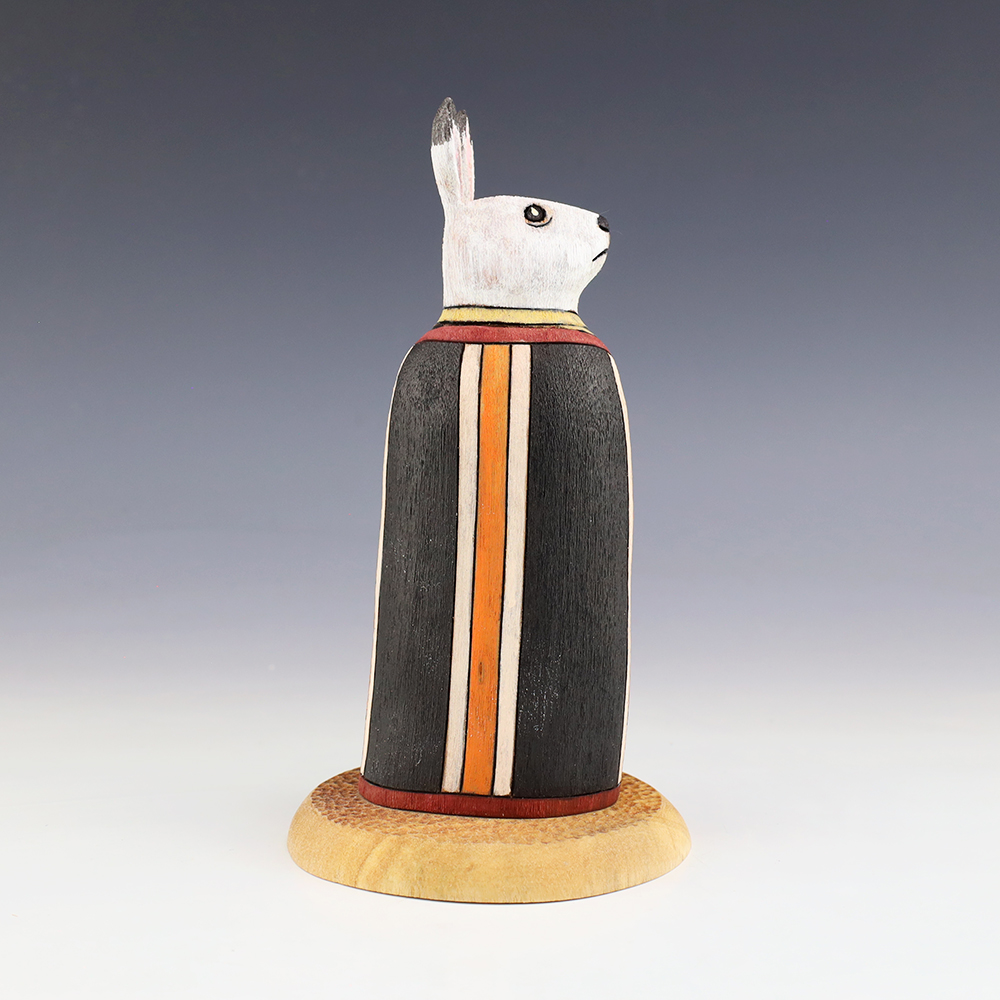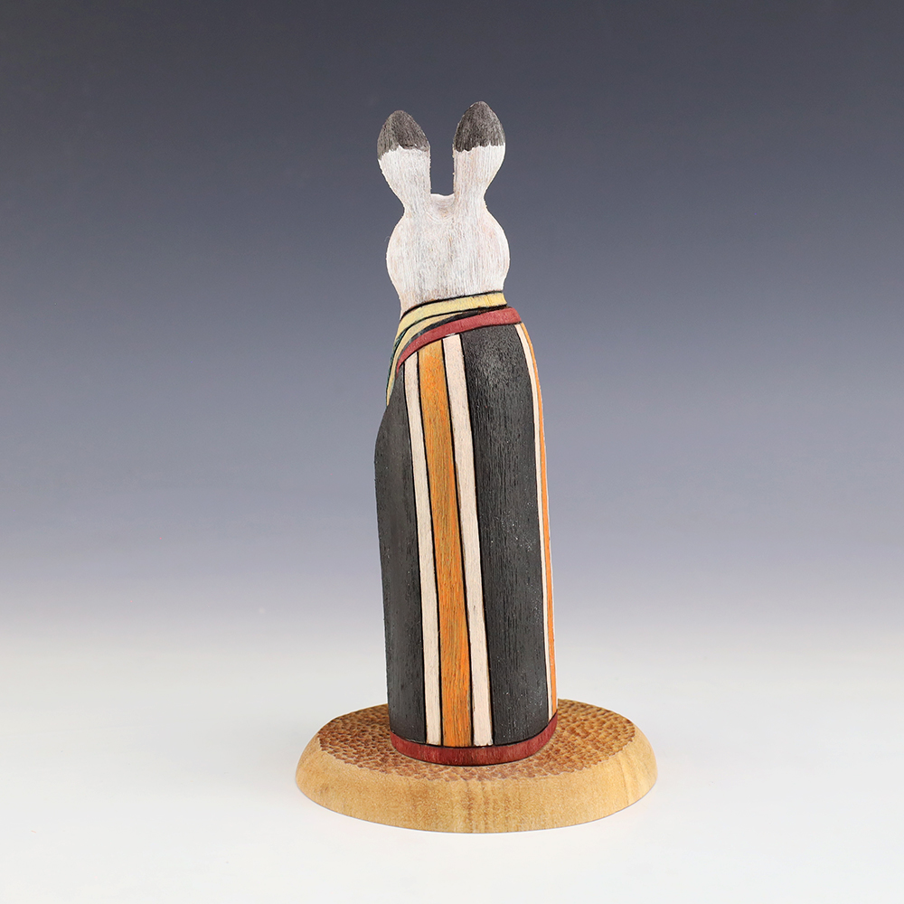 This handsome Rabbit is hand crafted by Navajo folk art artists Ray and Orleen Lansing. Carved out of wood with an amazing amount of detail. This rabbit carving would make a wonderful addition to your Native American or Navajo Folk art collection. Signed