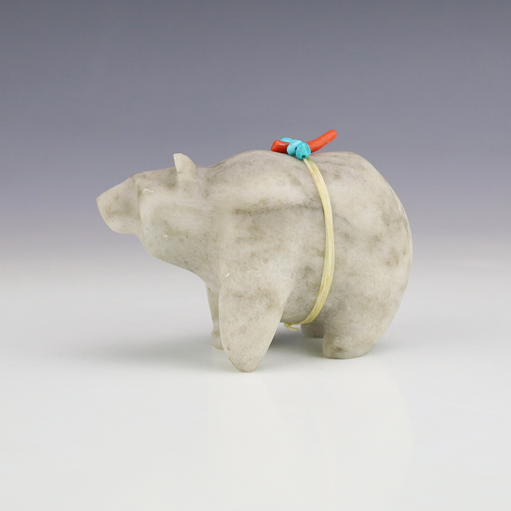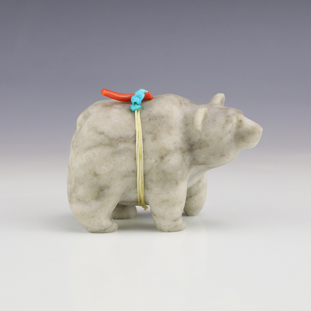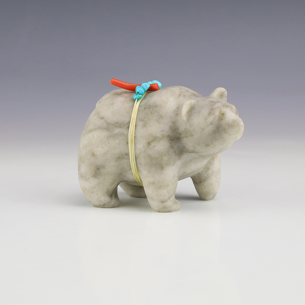 Zuni fetishes are carvings made from various materials by the Zuni people. Traditionally, fetishes served a ceremonial purpose for their creators and they represented animals and figures that were part of their culture. Today, as a form of Native American Art, they are sold to collectors worldwide. With a myriad of materials like turquoise, shell, jet, marble, serpentine, and much more, Zuni fetish carvers are able to create carvings in a style of their own.