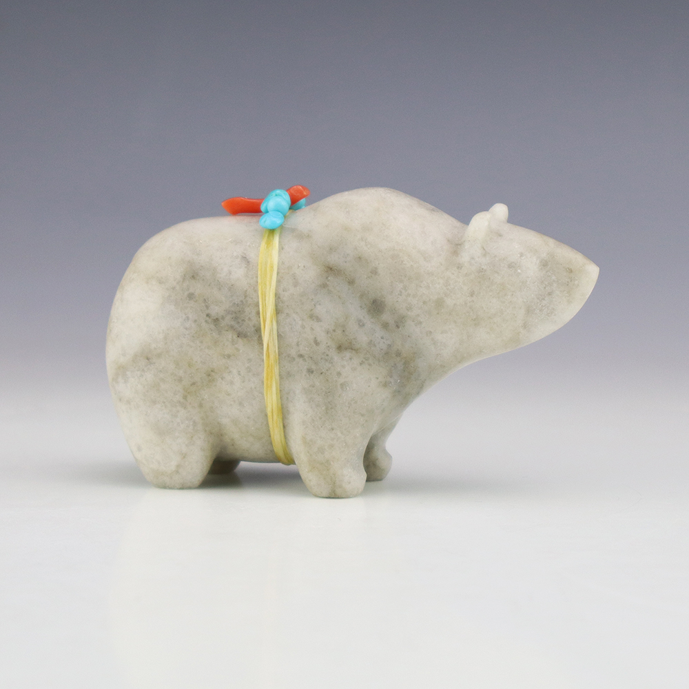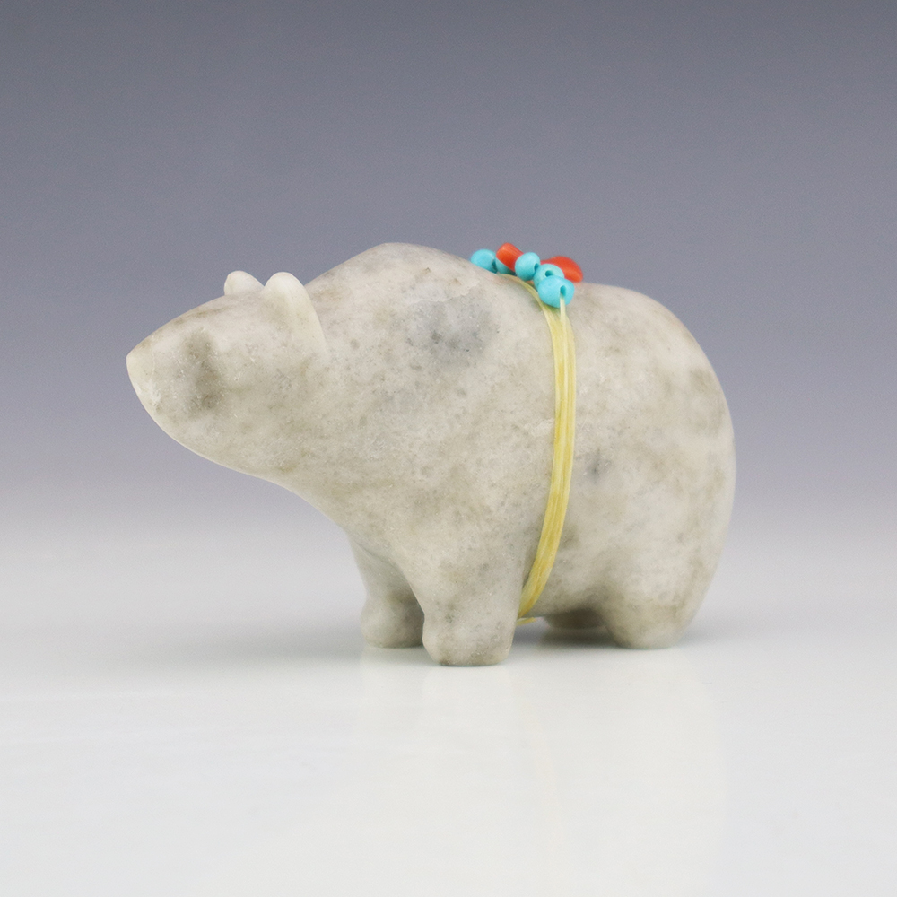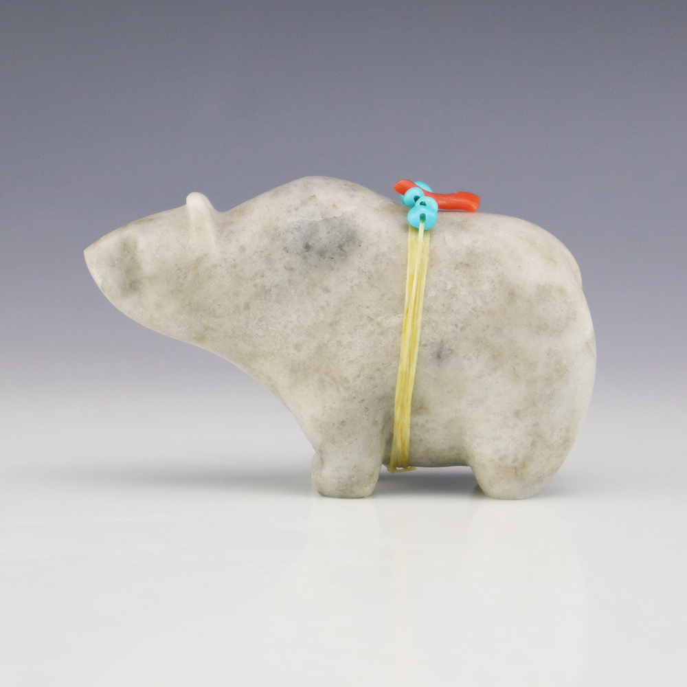 Zuni fetishes are carvings made from various materials by the Zuni people. Traditionally, fetishes served a ceremonial purpose for their creators and they represented animals and figures that were part of their culture. Today, as a form of Native American Art, they are sold to collectors worldwide. With a myriad of materials like turquoise, shell, jet, marble, serpentine, and much more, Zuni fetish carvers are able to create carvings in a style of their own.