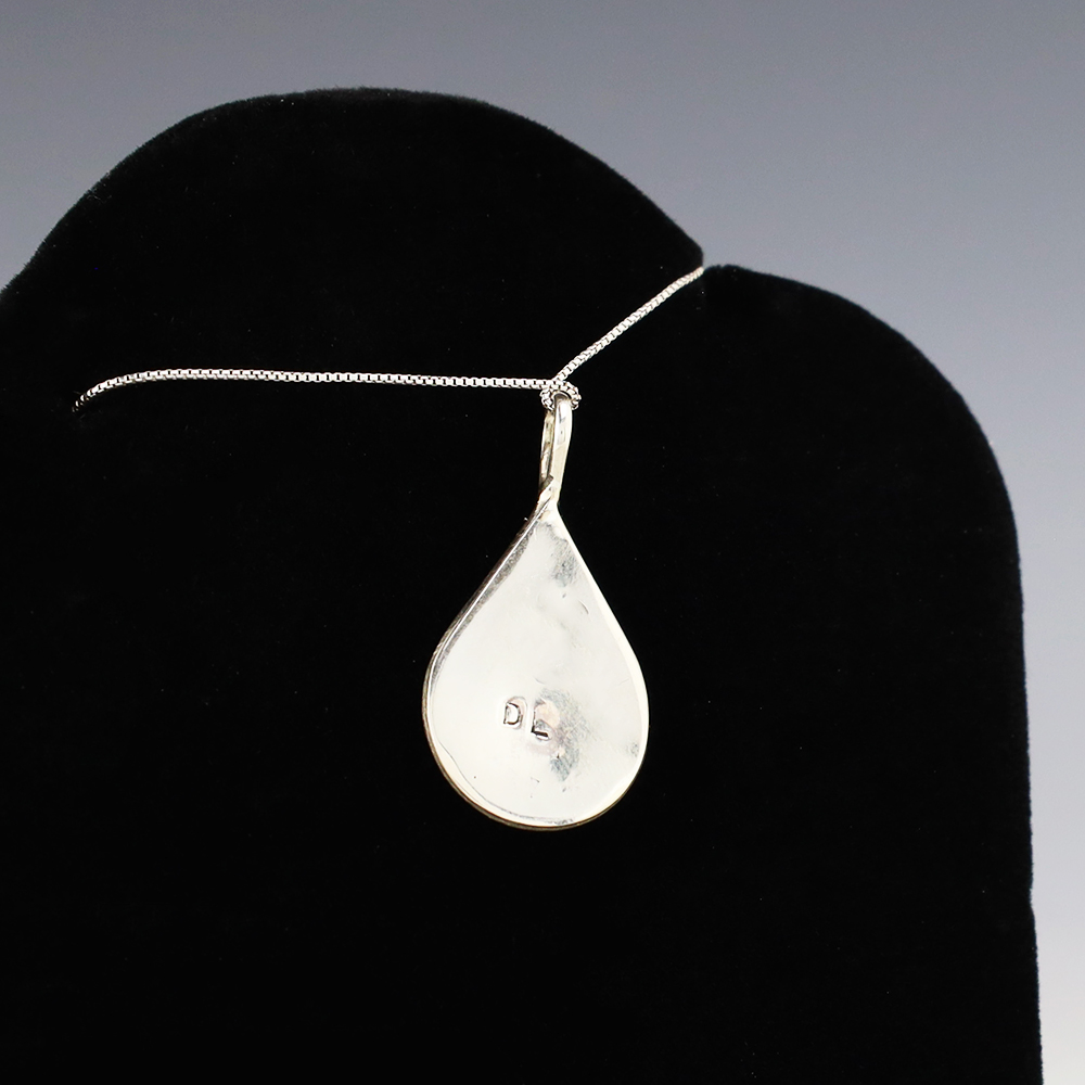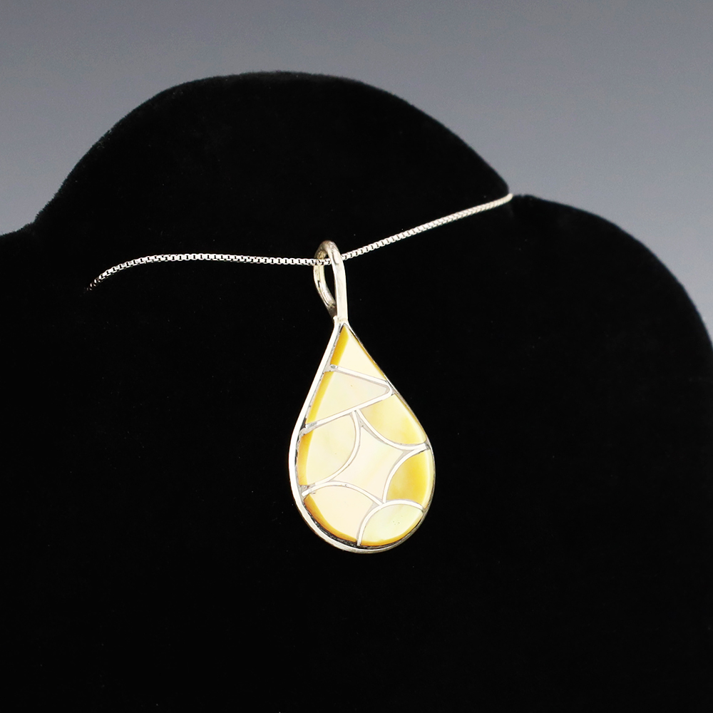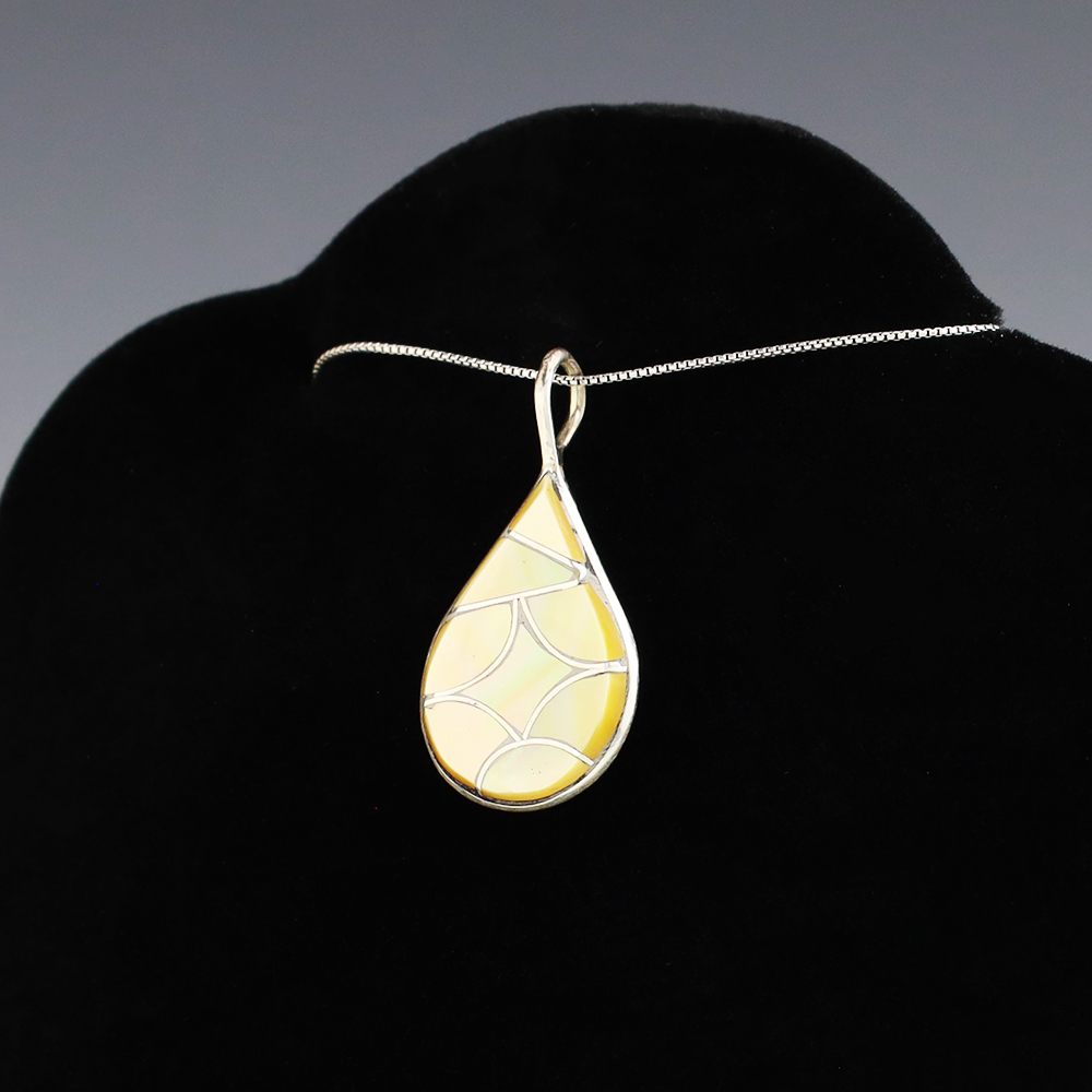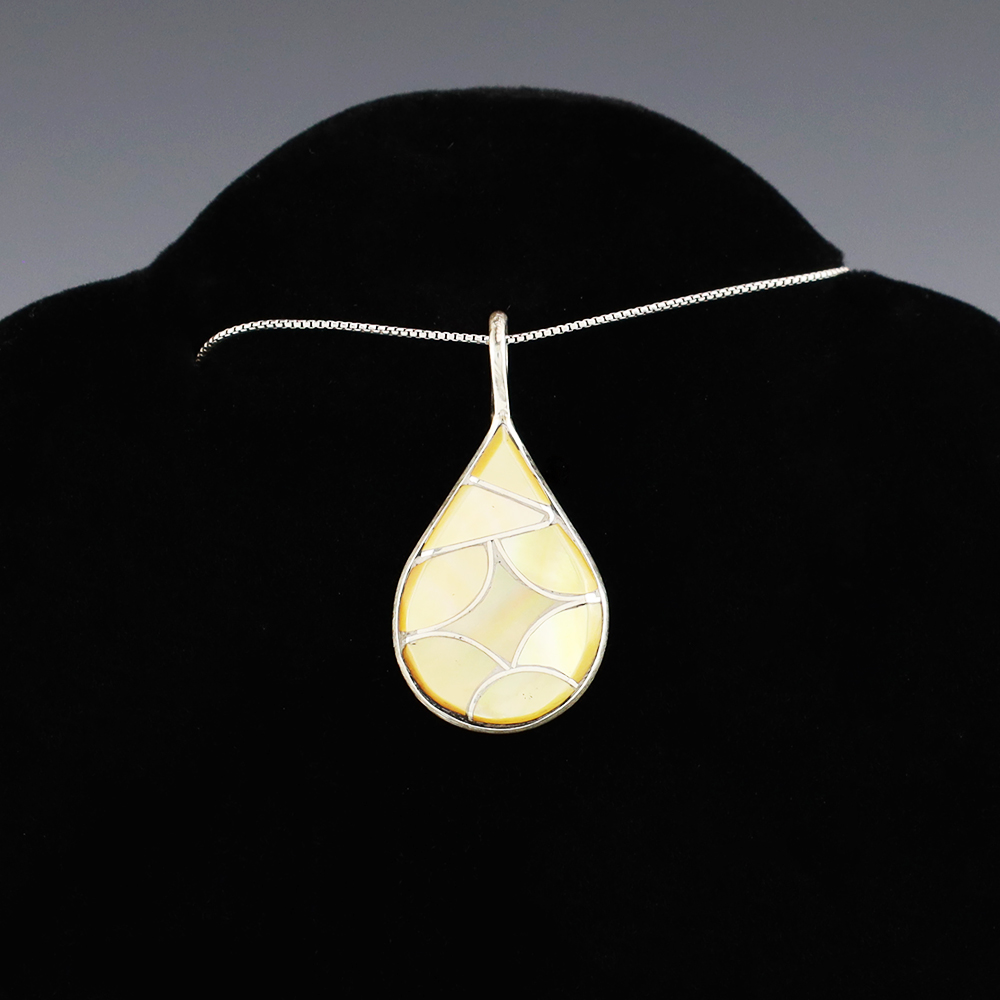 Zuni artist Delorna Lahi hand made this wonderful pendant. Made out of sterling silver and inlaid with Mother of Pearl Shell. Weighs 2 grams. Signed. (Chain not included)