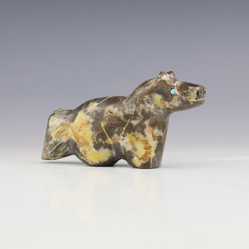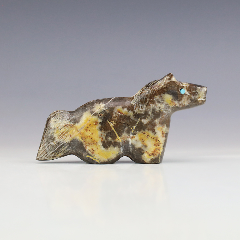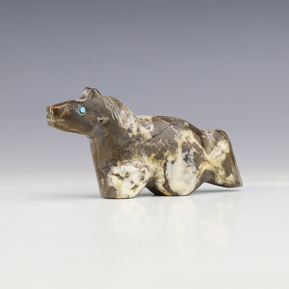 Zuni fetishes are carvings made from various materials by the Zuni people. Traditionally, fetishes served a ceremonial purpose for their creators and they represented animals and figures that were part of their culture. Today, as a form of Native American Art, they are sold to collectors worldwide. With a myriad of materials like turquoise, shell, jet, marble, serpentine, and much more, Zuni fetish carvers are able to create carvings in a style of their own.
