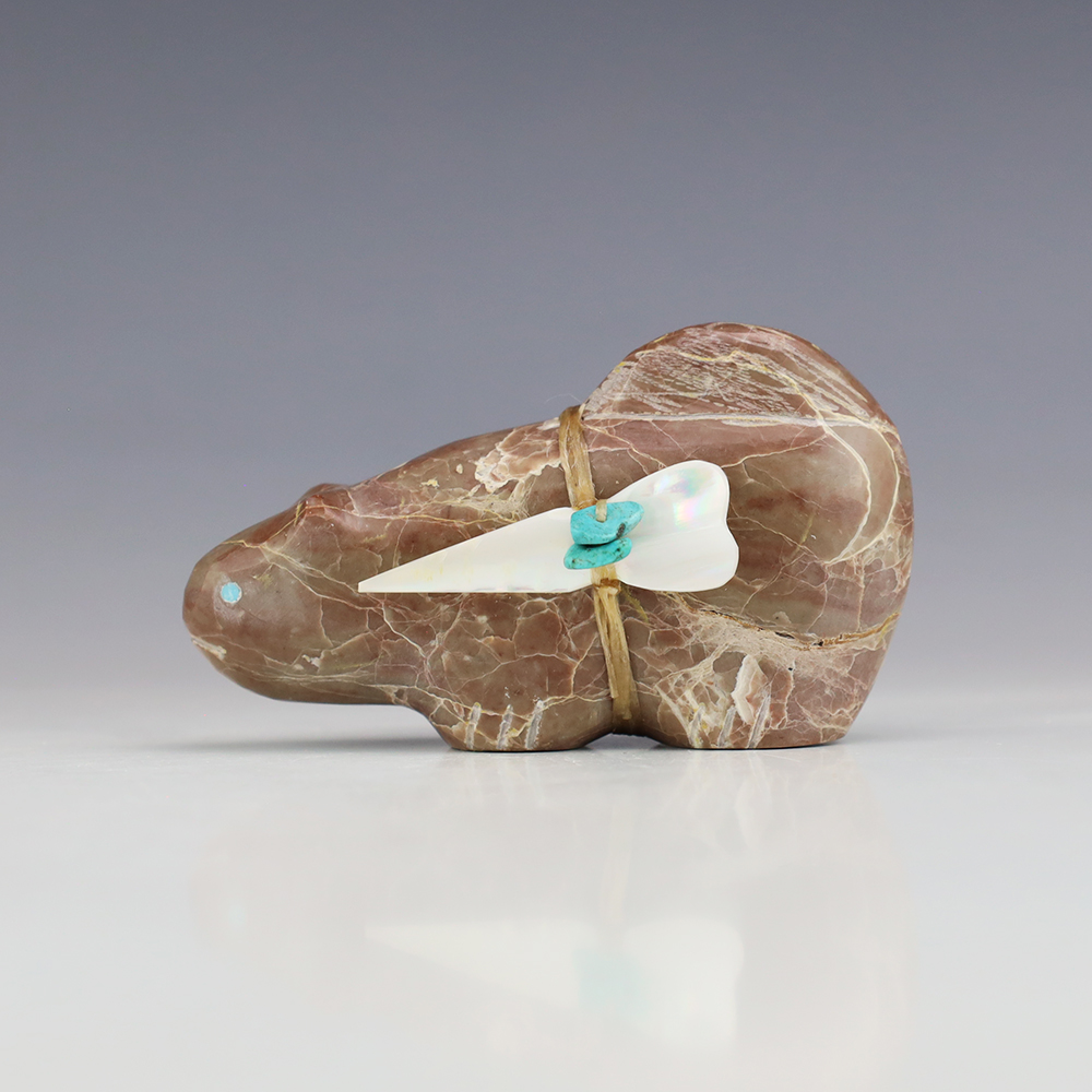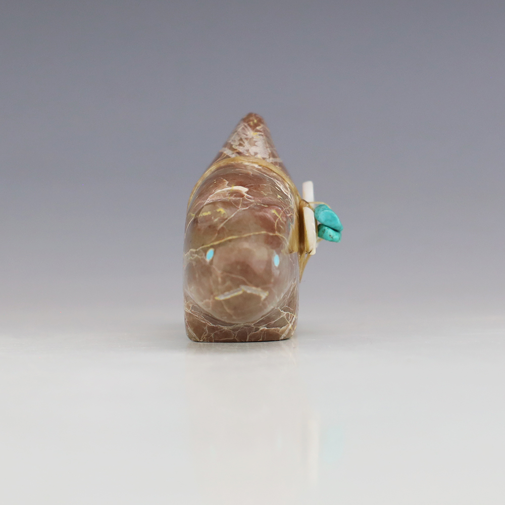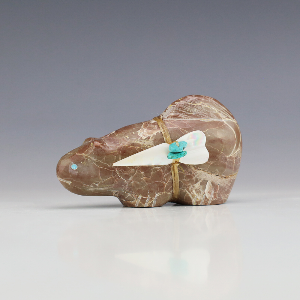 Zuni fetishes are carvings made from various materials by the Zuni people. Traditionally, fetishes served a ceremonial purpose for their creators and they represented animals and figures that were part of their culture. Today, as a form of Native American Art, they are sold to collectors worldwide. With a myriad of materials like turquoise, shell, jet, marble, serpentine, and much more, Zuni fetish carvers are able to create carvings in a style of their own.