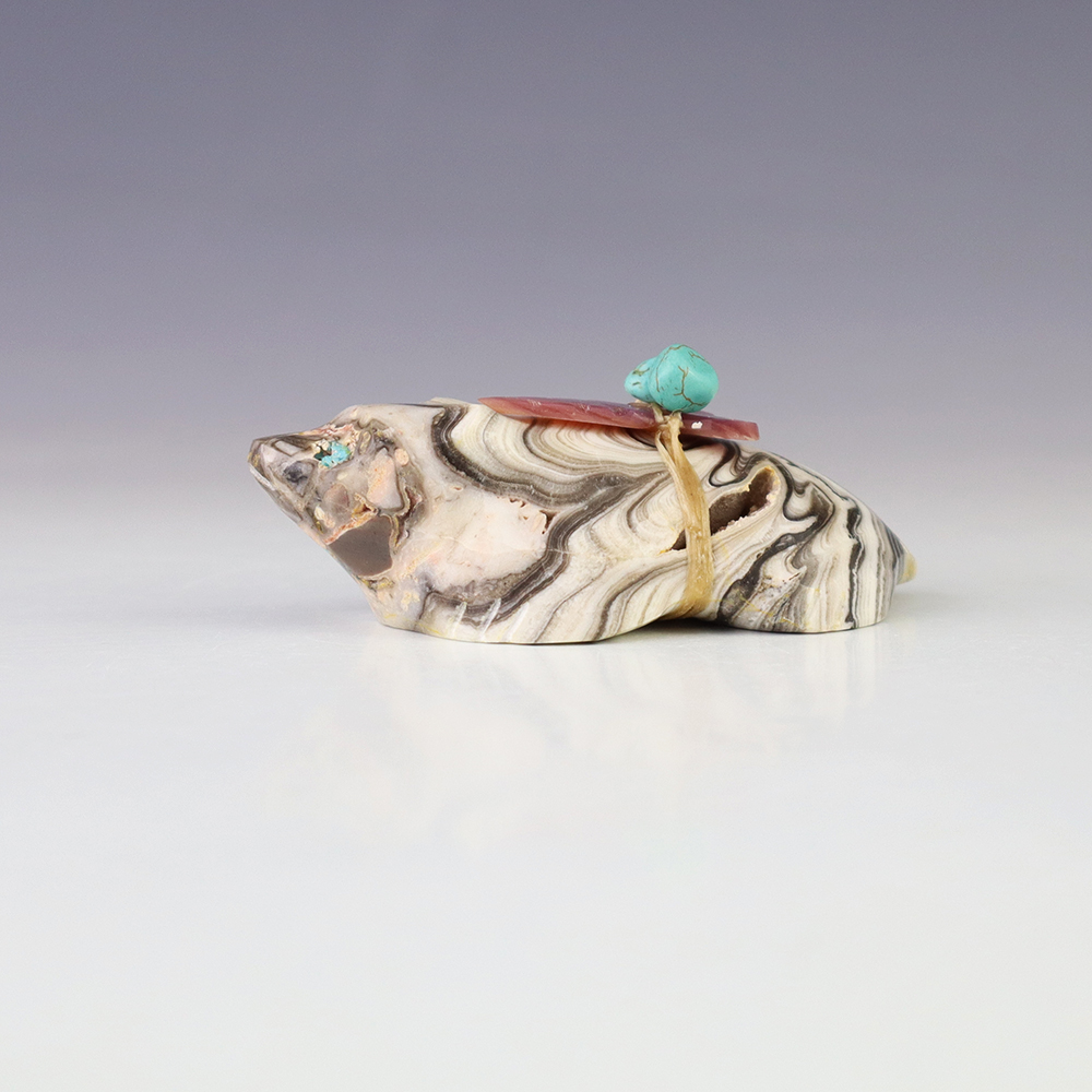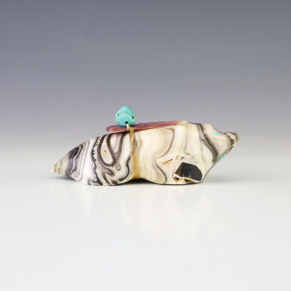 Zuni fetishes are carvings made from various materials by the Zuni people. Traditionally, fetishes served a ceremonial purpose for their creators and they represented animals and figures that were part of their culture. Today, as a form of Native American Art, they are sold to collectors worldwide. With a myriad of materials like turquoise, shell, jet, marble, serpentine, and much more, Zuni fetish carvers are able to create carvings in a style of their own.