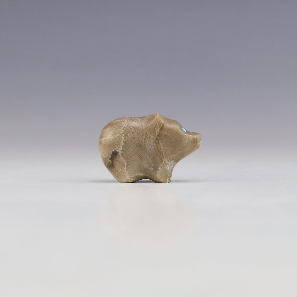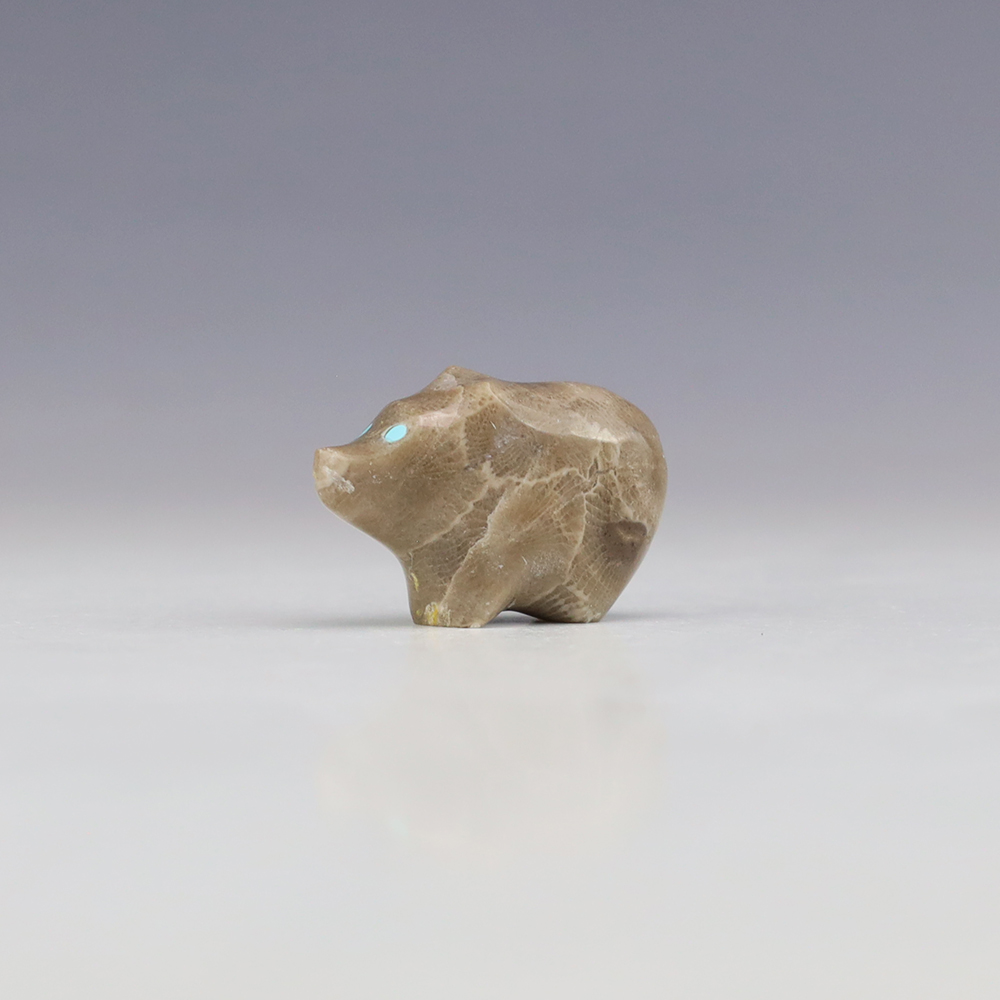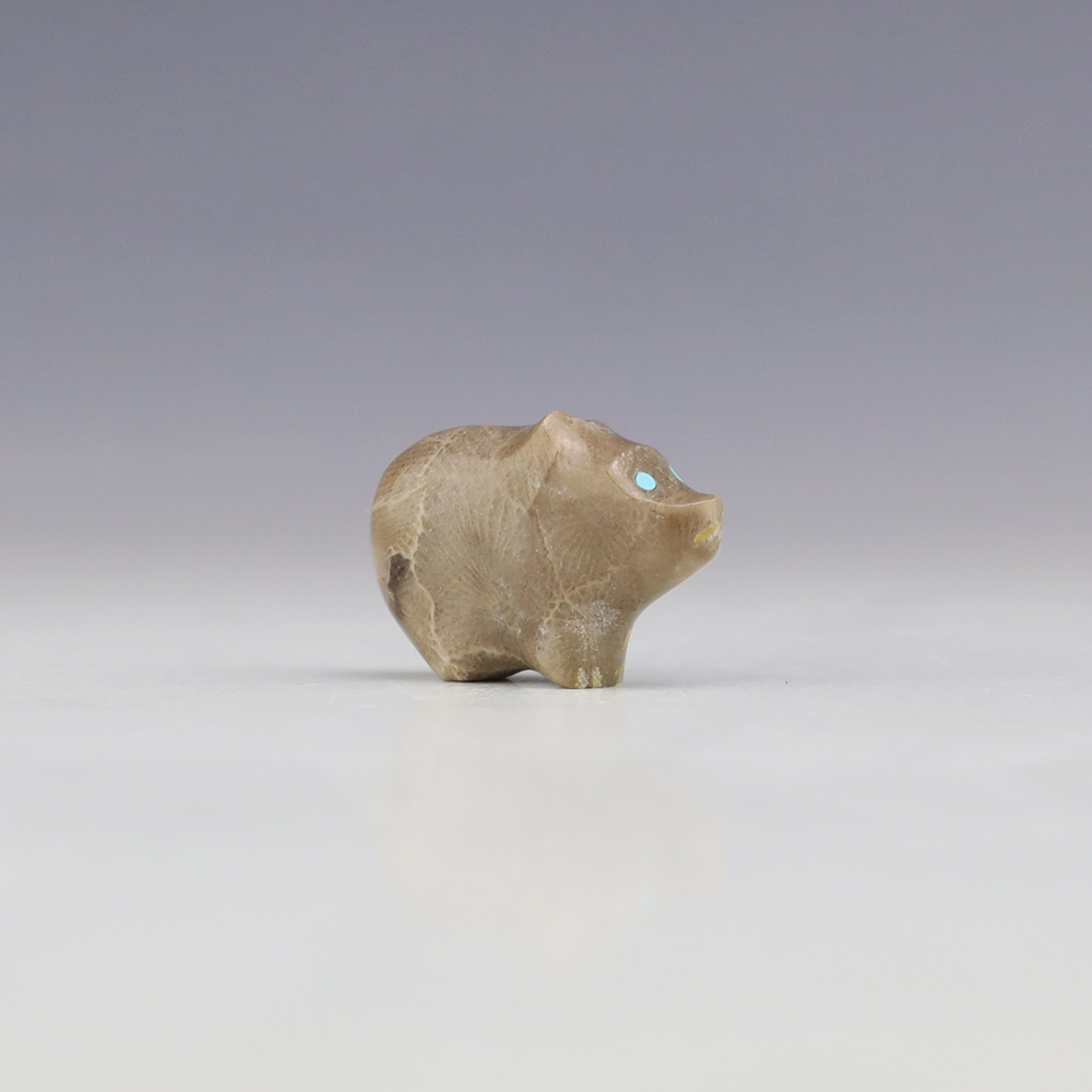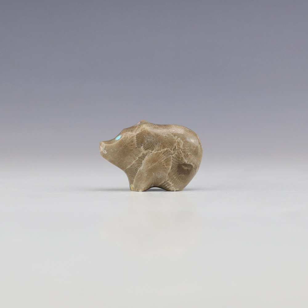 Zuni fetish carvers Leland Boone and Daphne Quam made this marvelous bear fetish out Petoskey Stone. The Bear is the Guardian fetish of the West, and represents healing and strength. A great addition to your Native American or Zuni fetish collection.