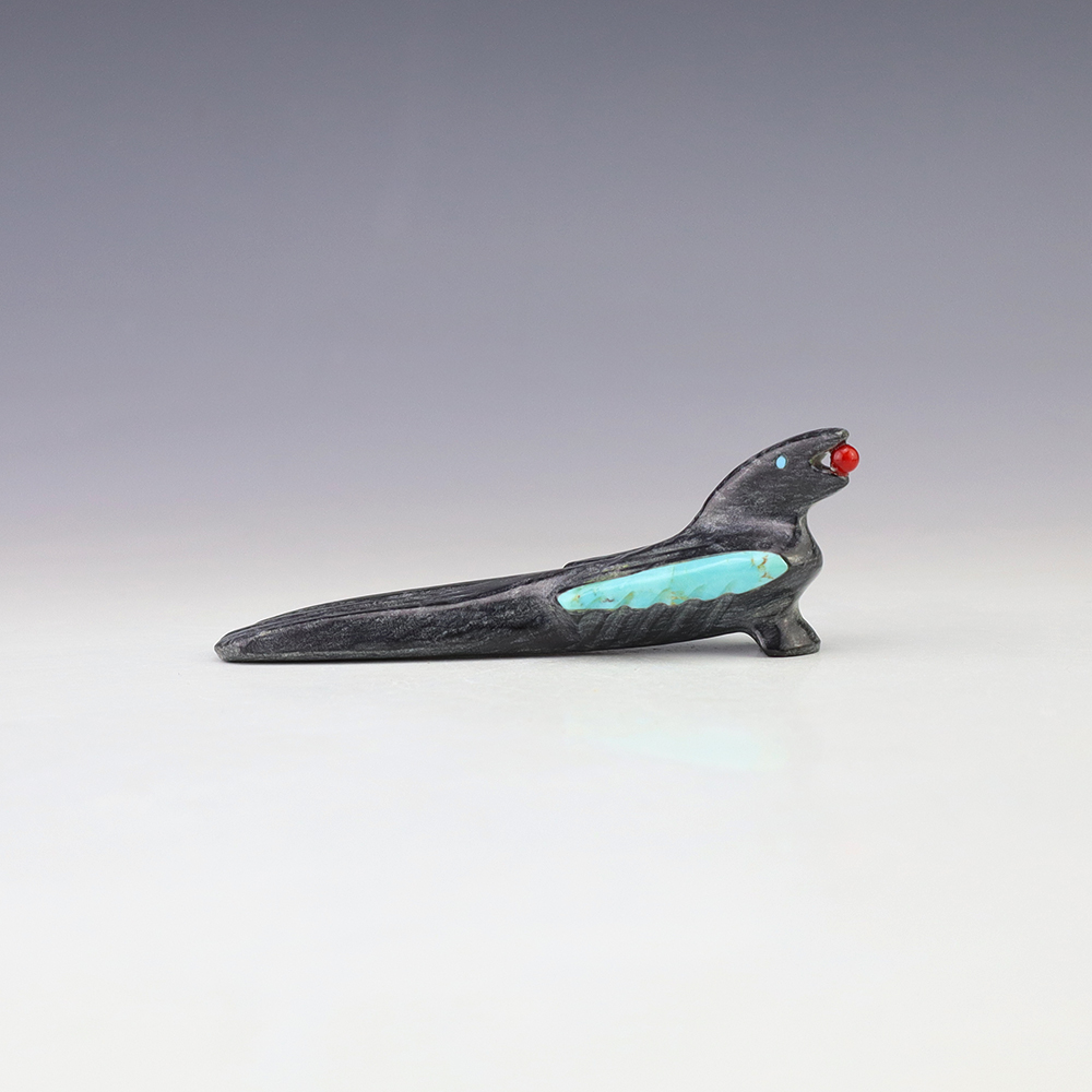 Zuni fetishes are carvings made from various materials by the Zuni people. Traditionally, fetishes served a ceremonial purpose for their creators and they represented animals and figures that were part of their culture. Today, as a form of Native American Art, they are sold to collectors worldwide. With a myriad of materials like turquoise, shell, jet, marble, serpentine, and much more, Zuni fetish carvers are able to create carvings in a style of their own.