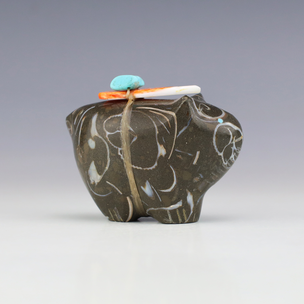 Zuni fetishes are carvings made from various materials by the Zuni people. Traditionally, fetishes served a ceremonial purpose for their creators and they represented animals and figures that were part of their culture. Today, as a form of Native American Art, they are sold to collectors worldwide. With a myriad of materials like turquoise, shell, jet, marble, serpentine, and much more, Zuni fetish carvers are able to create carvings in a style of their own.