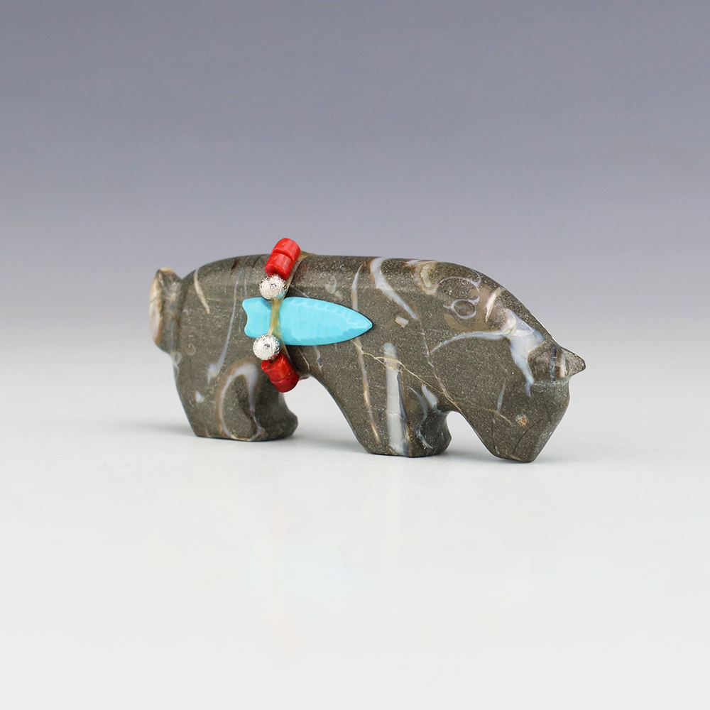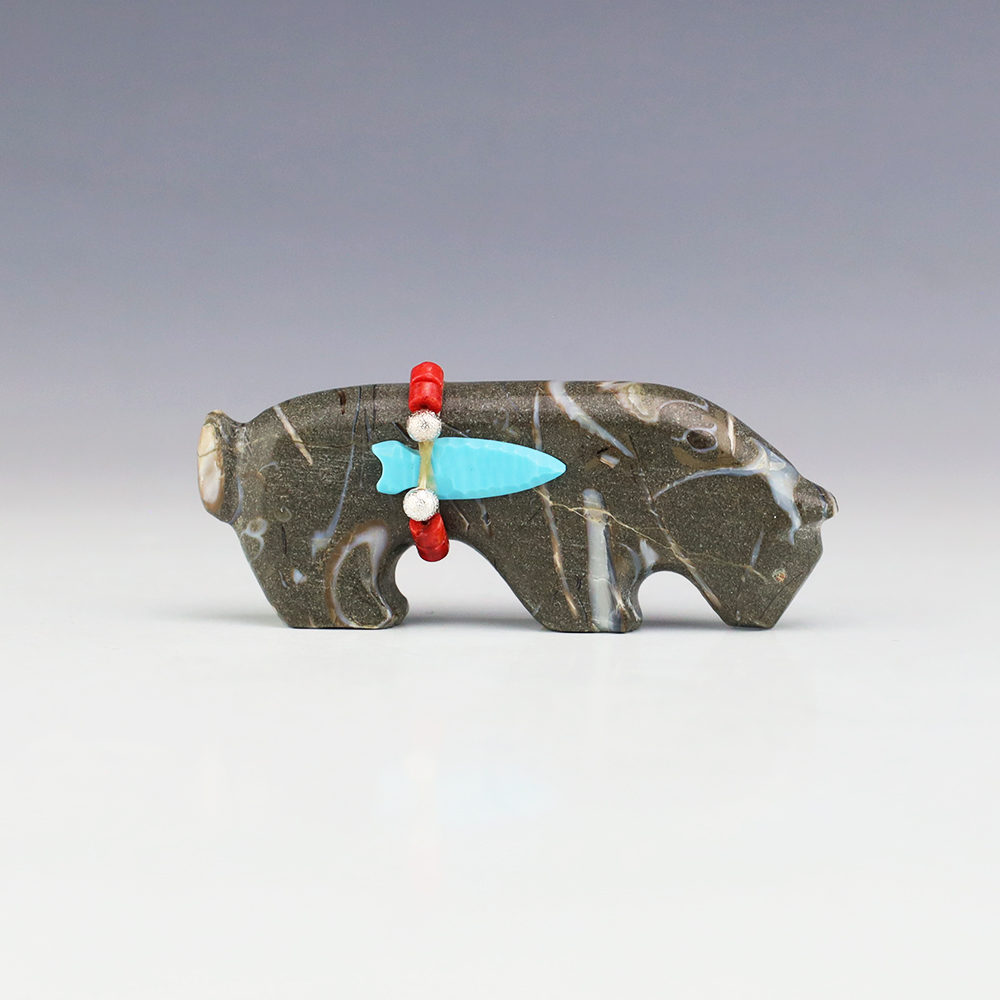 Zuni fetishes are carvings made from various materials by the Zuni people. Traditionally, fetishes served a ceremonial purpose for their creators and they represented animals and figures that were part of their culture. Today, as a form of Native American Art, they are sold to collectors worldwide. With a myriad of materials like turquoise, shell, jet, marble, serpentine, and much more, Zuni fetish carvers are able to create carvings in a style of their own.