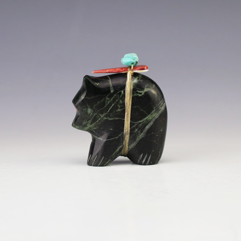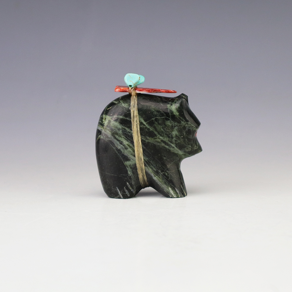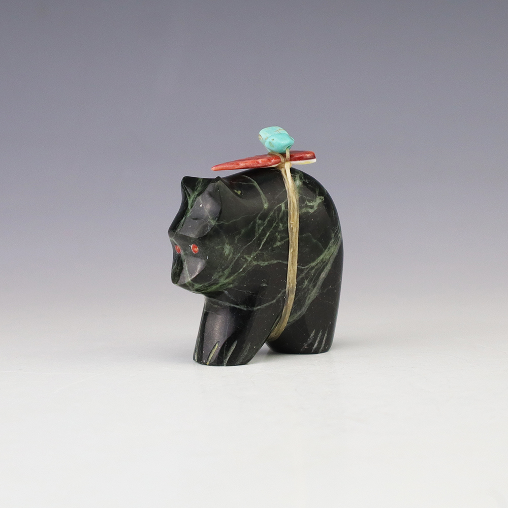 Zuni fetishes are carvings made from various materials by the Zuni people. Traditionally, fetishes served a ceremonial purpose for their creators and they represented animals and figures that were part of their culture. Today, as a form of Native American Art, they are sold to collectors worldwide. With a myriad of materials like turquoise, shell, jet, marble, serpentine, and much more, Zuni fetish carvers are able to create carvings in a style of their own.
