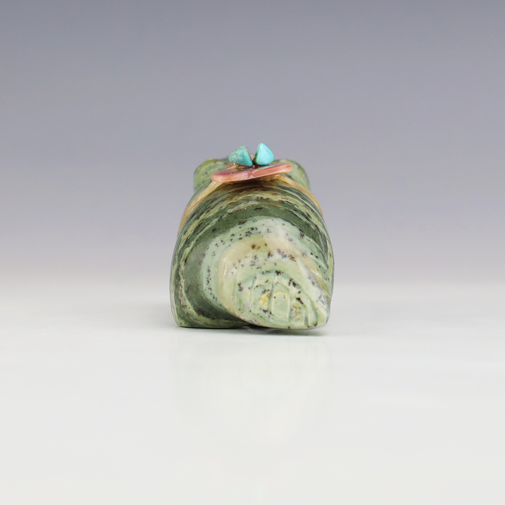 Zuni fetish carver, Nelson Yatsattie hand crafted this marvelous turtle. Hand carved out of Onyx with Turquoise inlaid eyes. Zuni turtle fetishes are one of the oldest symbols of Mother Earth and they symbolize longevity. Signed 3/4” tall x 2 1/2” long x 2” wide Zuni fetishes are carvings made...