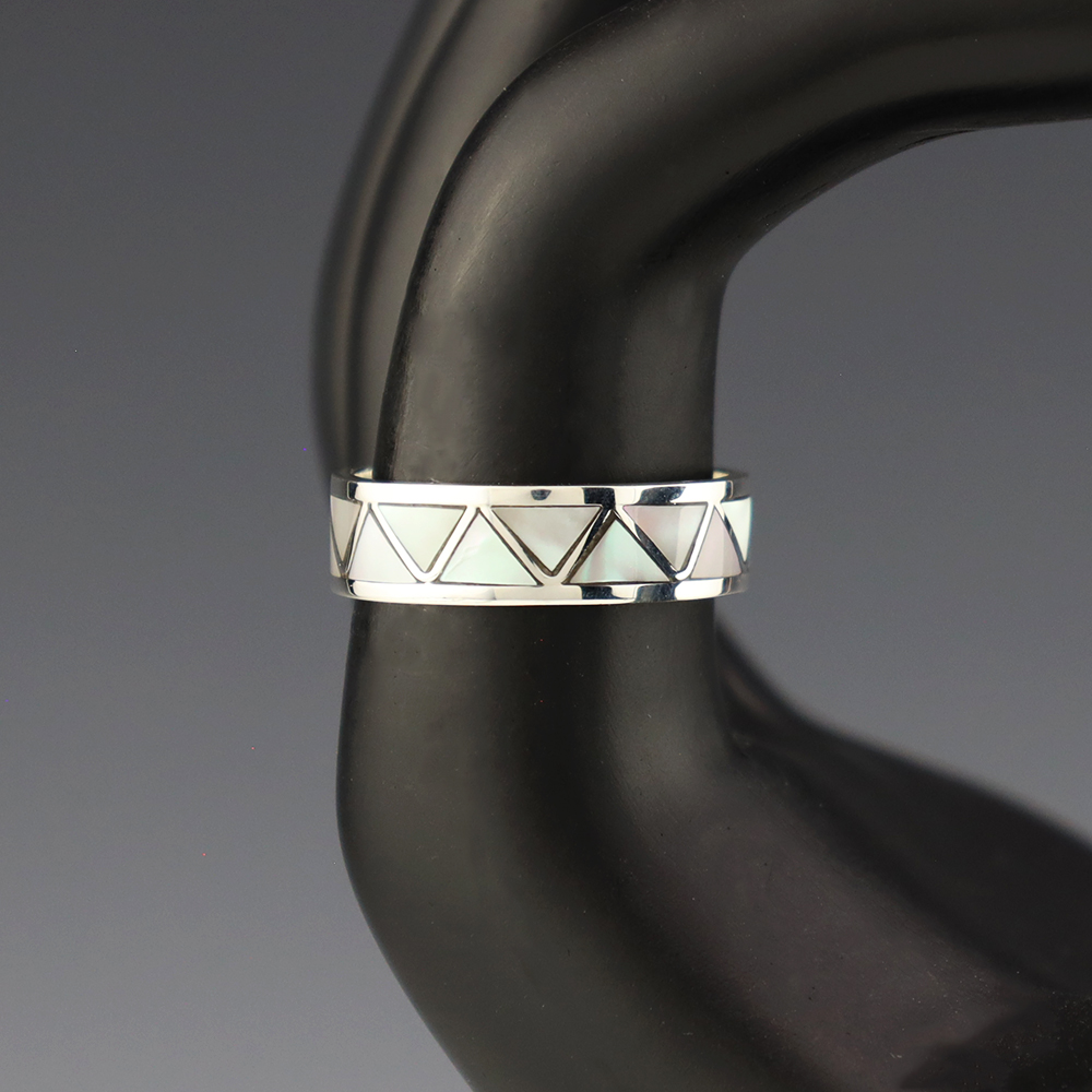 Fine channel inlay work. Zuni jewelry makers, Nancy and Sheldon Westika hand crafted this stunning ring. Sterling silver and inlaid with natural Lapis. Zuni artists are known for their lapidary work. The Westikas have been making jewelry since the 1970’s and they are known for their fine inlay work. Signed. ...