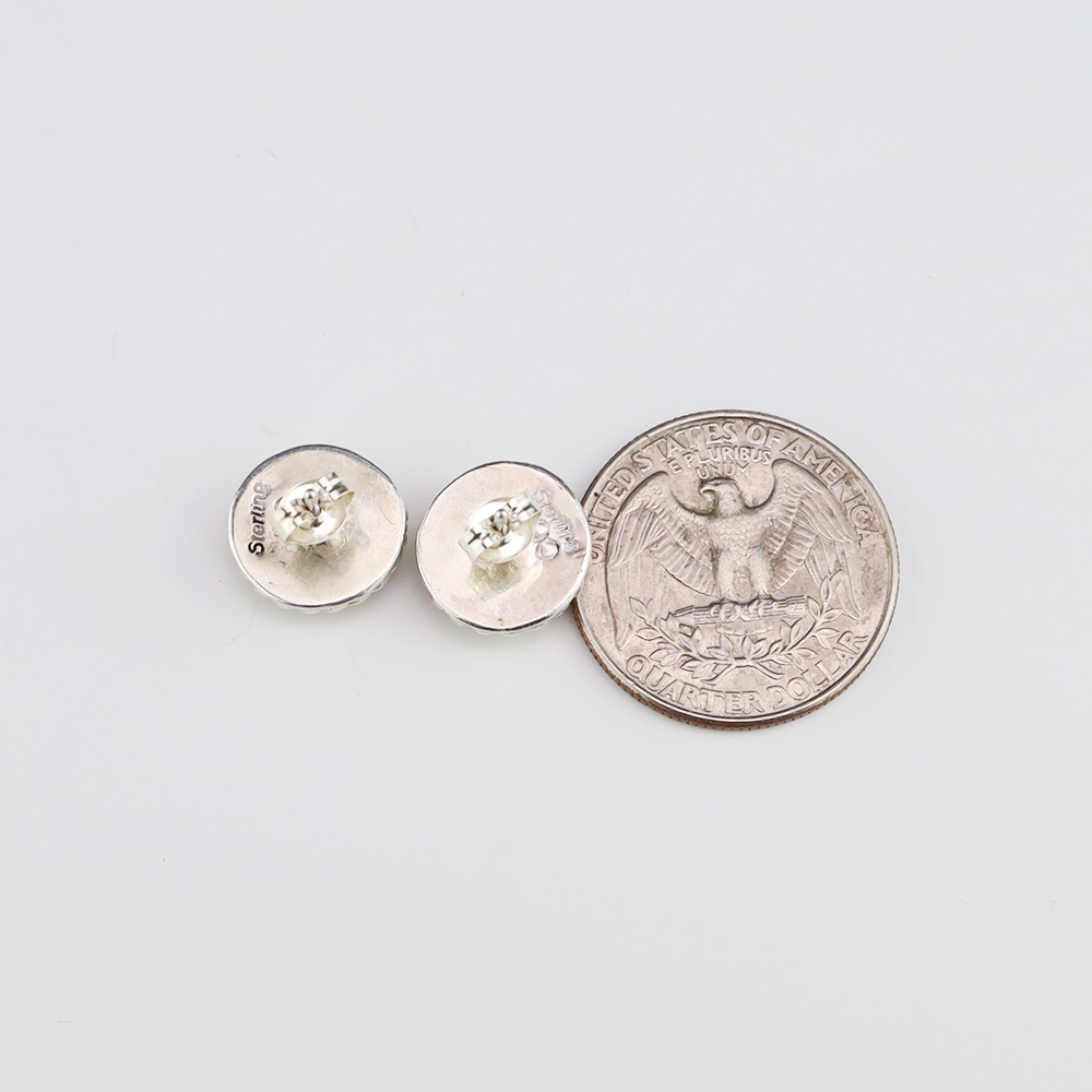 Outstanding sterling silver earrings with Mother of Pearl Shell and Turquoise inlay. Hand crafted by Zuni jewelry makers, Nancy and Sheldon Westika. The Westikas have been making jewelry since the 1970’s and they are known for their fine inlay work. Weighs 6 grams. Signed 7/8” wide x 7/8” tall 1 ...