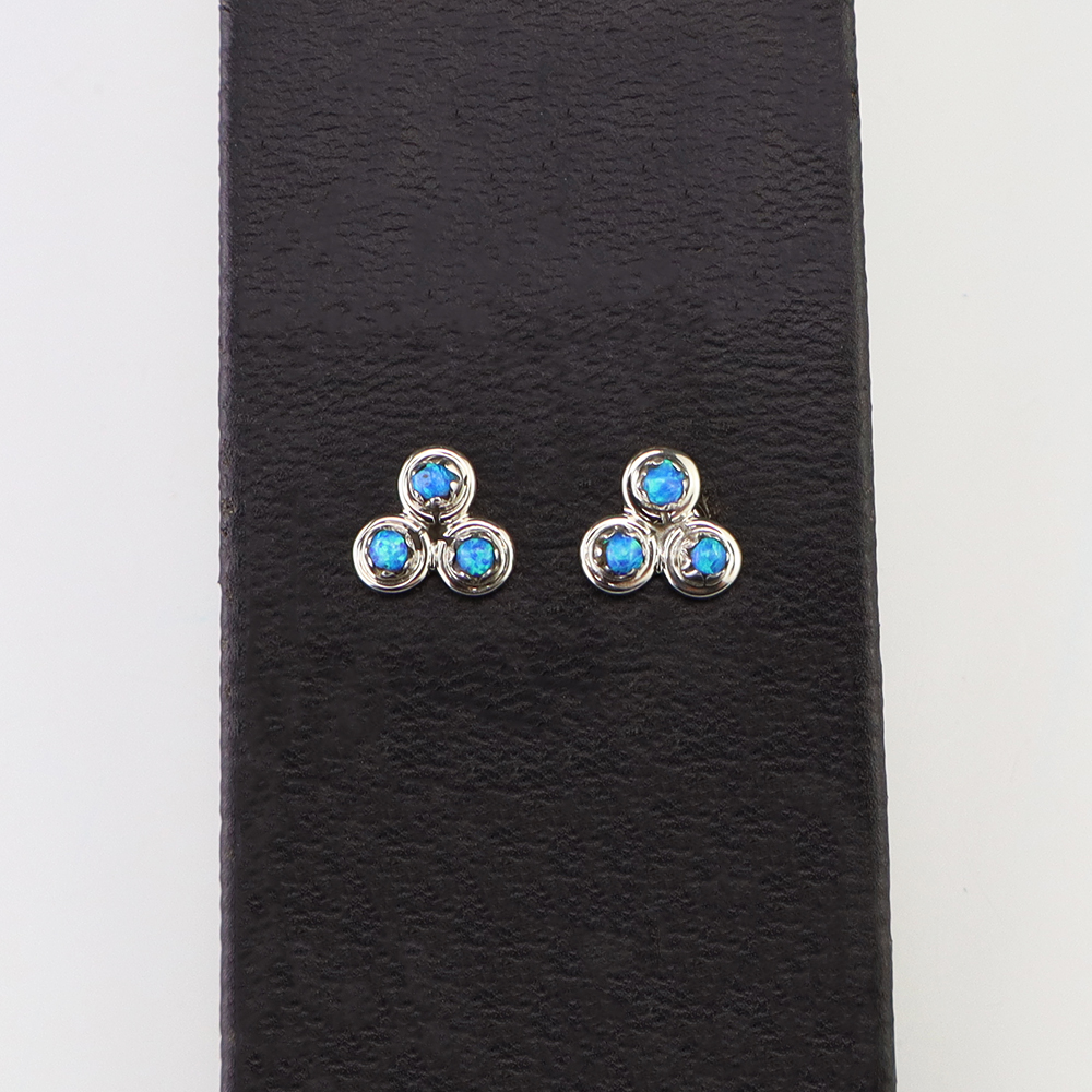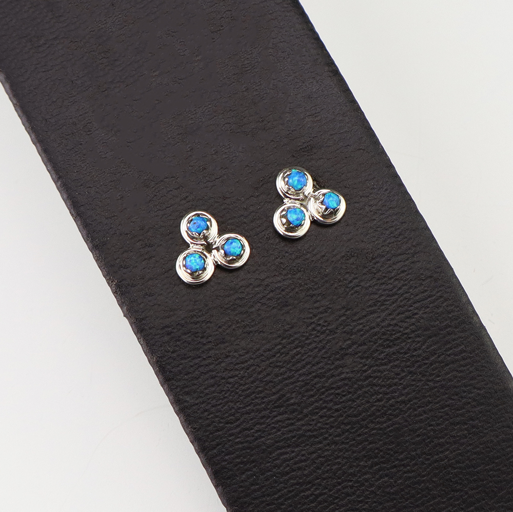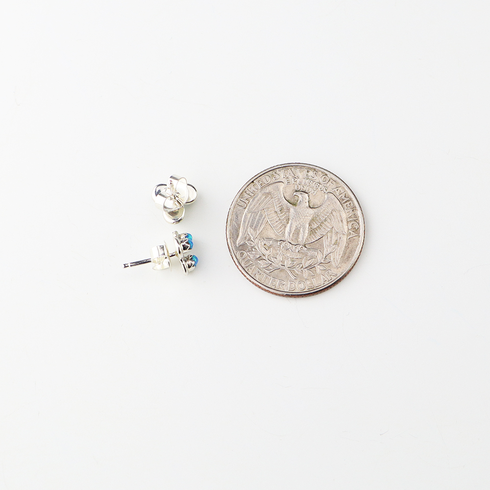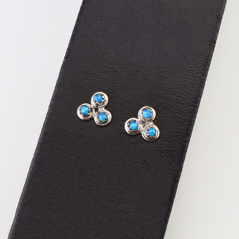 Each earring features Laboratory Opal set into a sterling silver setting. Hand made by Zuni artist Cyrus Lutse. These gorgeous earrings will become a versatile accessory in your jewelry collection