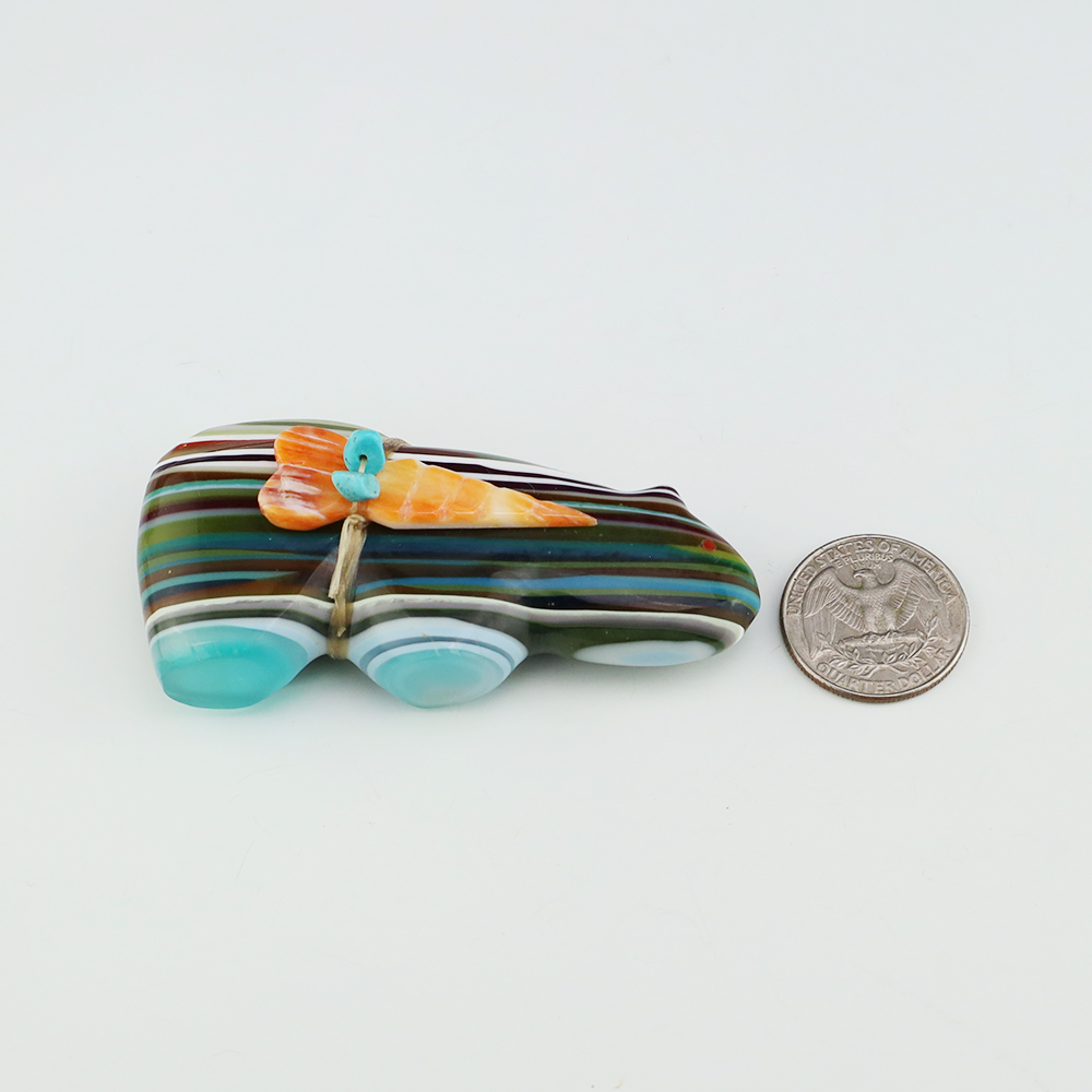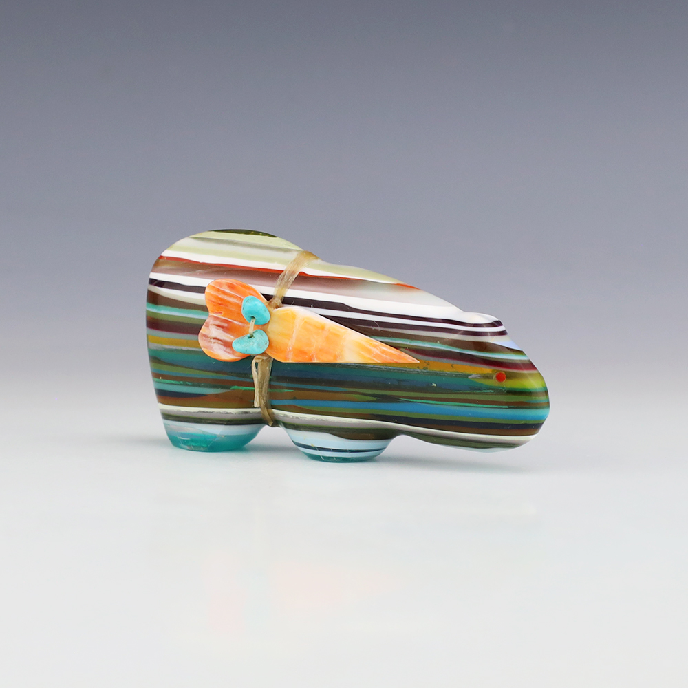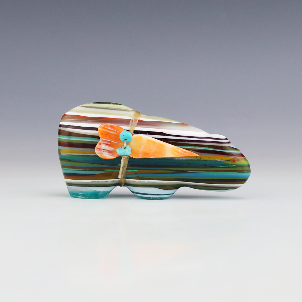 Zuni fetishes are carvings made from various materials by the Zuni people. Traditionally, fetishes served a ceremonial purpose for their creators and they represented animals and figures that were part of their culture. Today, as a form of Native American Art, they are sold to collectors worldwide. With a myriad of materials like turquoise, shell, jet, marble, serpentine, and much more, Zuni fetish carvers are able to create carvings in a style of their own.