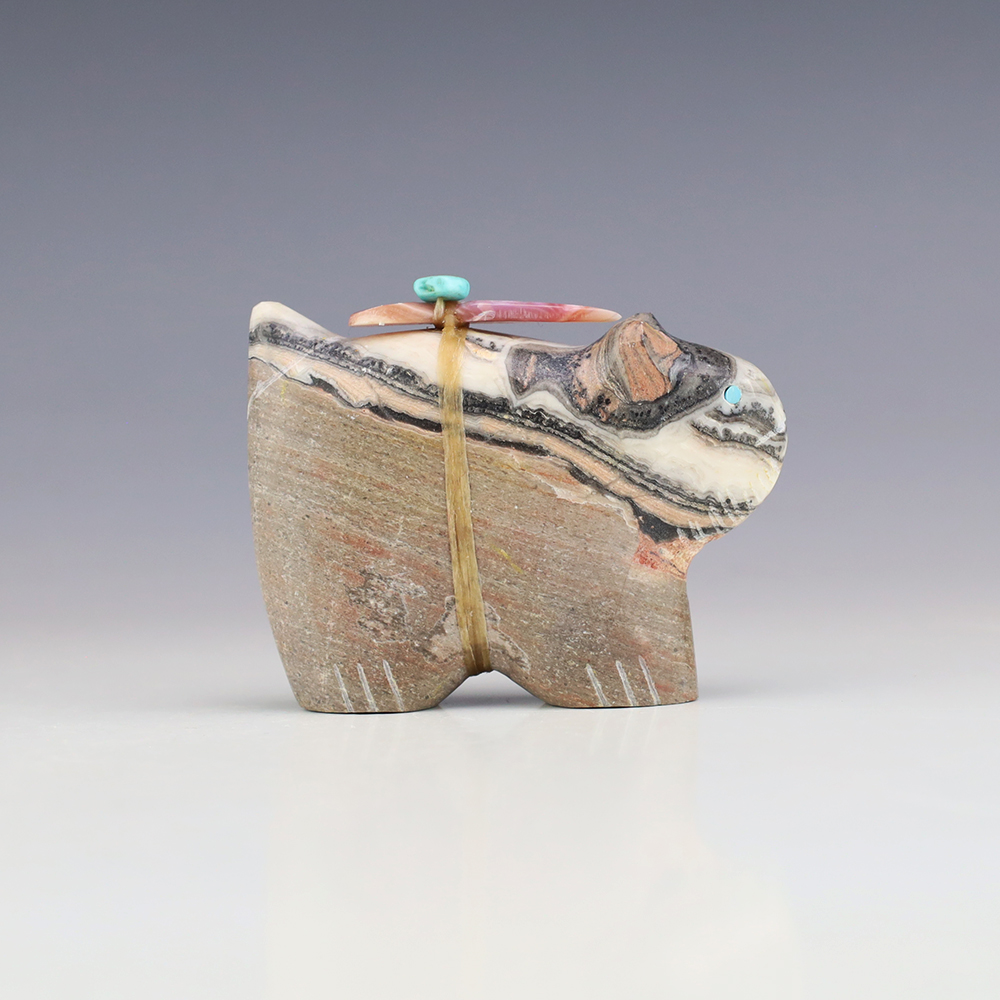 Zuni fetishes are carvings made from various materials by the Zuni people. Traditionally, fetishes served a ceremonial purpose for their creators and they represented animals and figures that were part of their culture. Today, as a form of Native American Art, they are sold to collectors worldwide. With a myriad of materials like turquoise, shell, jet, marble, serpentine, and much more, Zuni fetish carvers are able to create carvings in a style of their own.